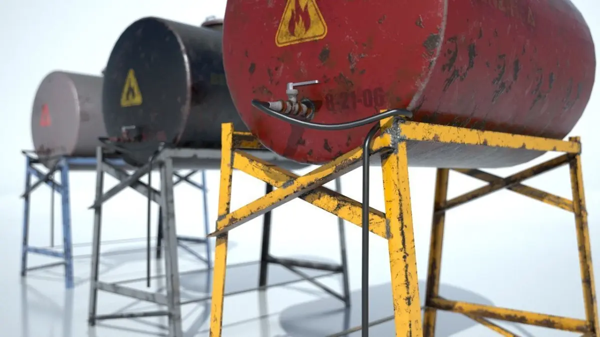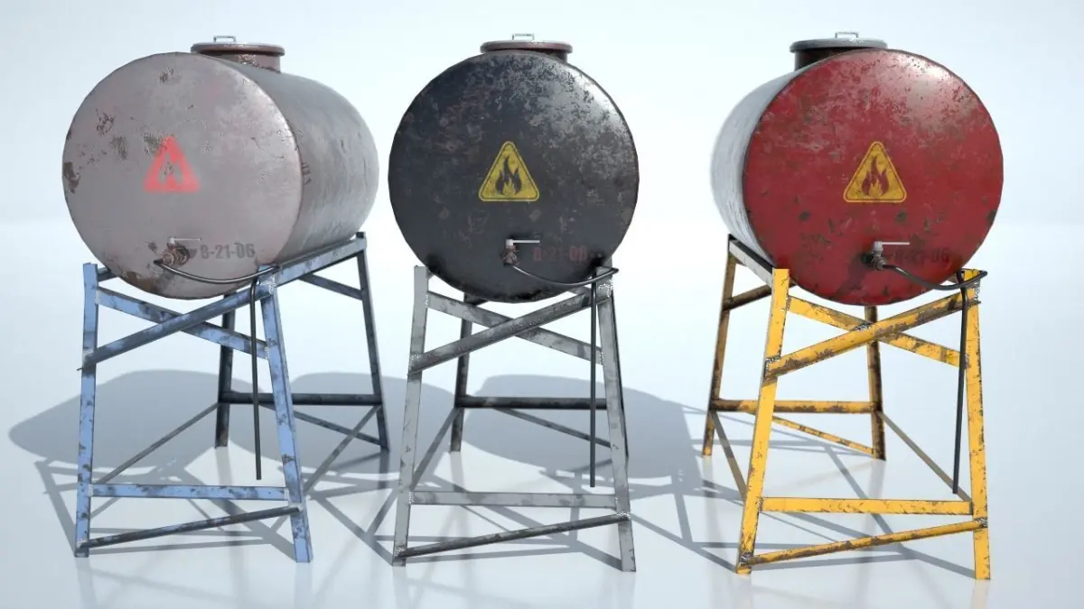 oil Tank Gameready Has 3 different textures, red, black and gray C4Dvray - FBX - OBJ