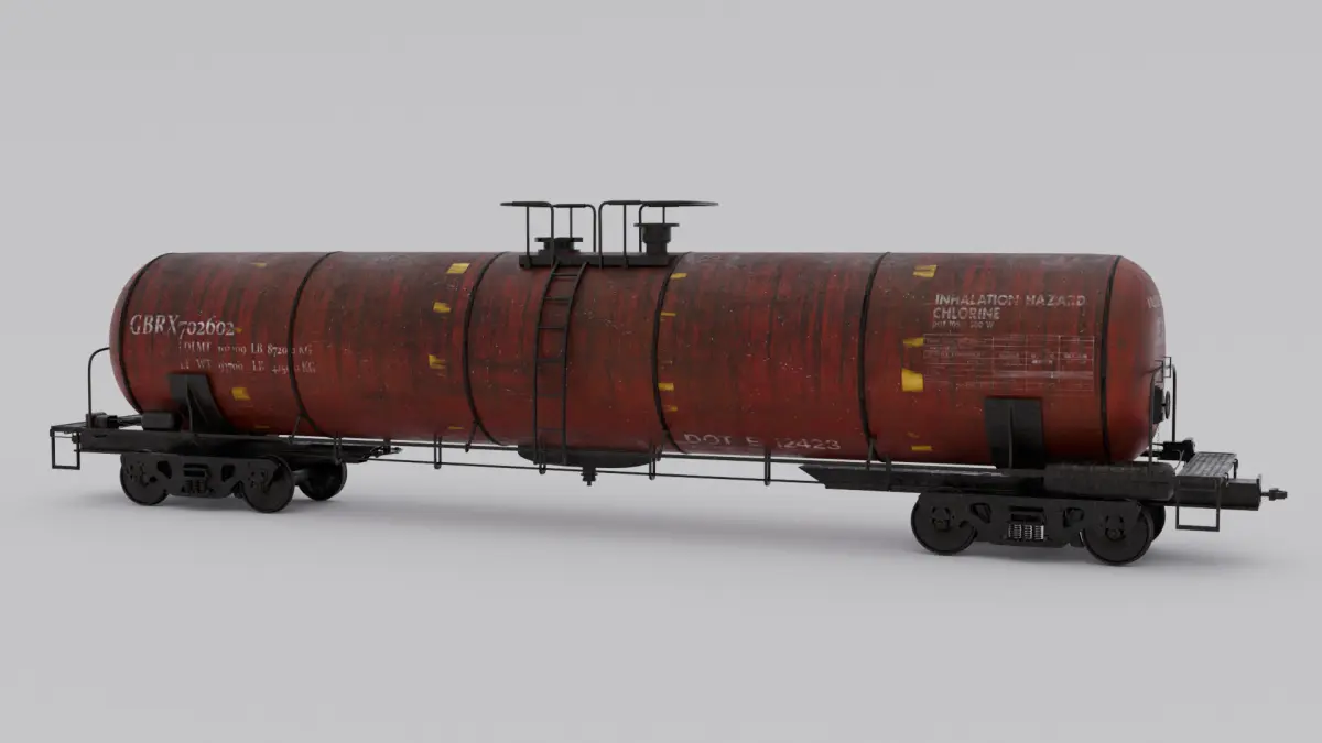 This asset pack includes three detailed fuel/oil tank train wagons and three standard boxcars, all designed with realistic wear and tear, ideal for post-apocalyptic, industrial, or historical scenes.
