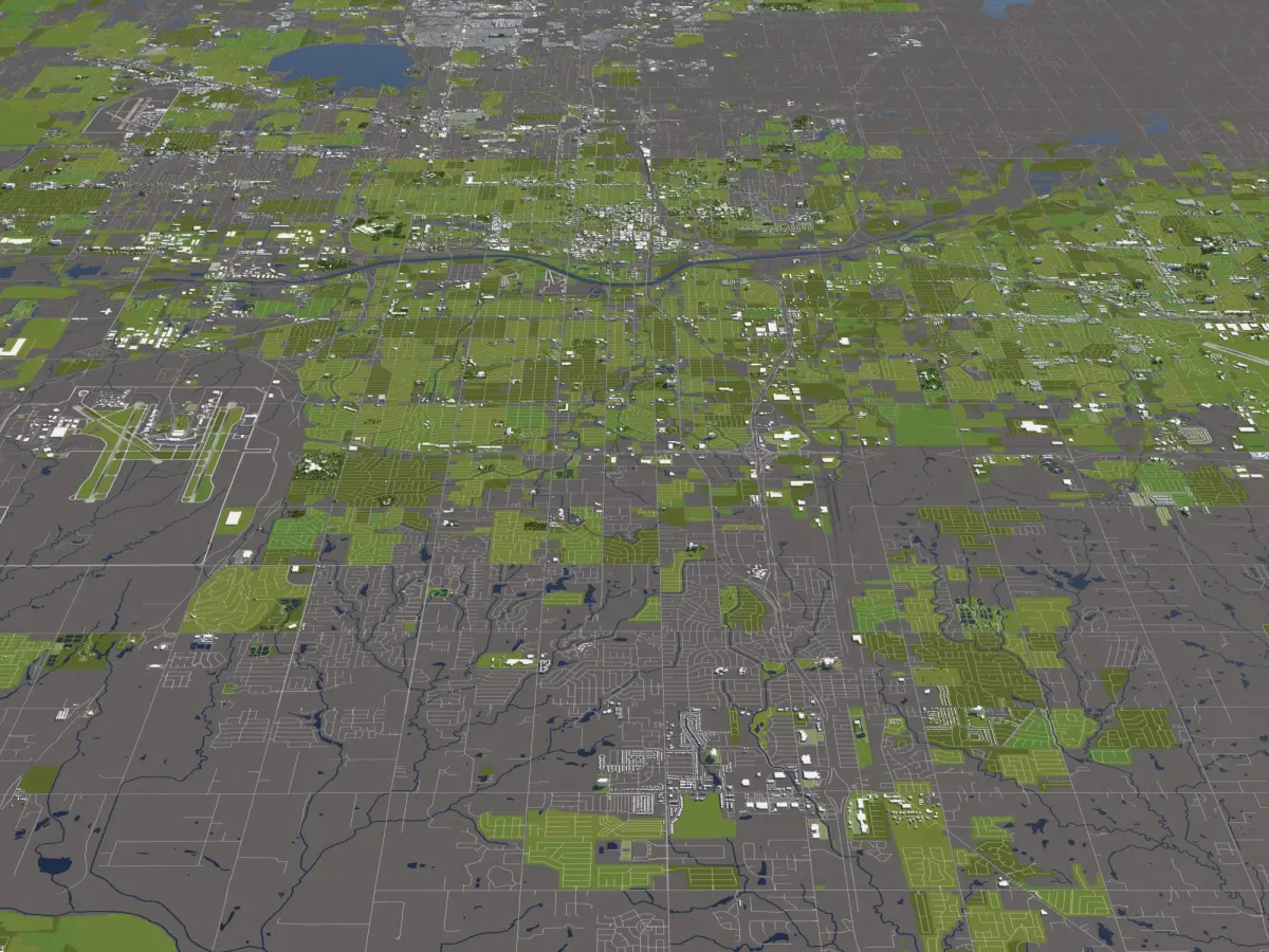 A DETAILED 3D MODEL CITY MAP OF OKLAHOMA CITY, USA: