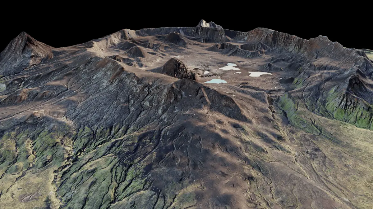 Okmok Caldera 3d model terrain. 3d model landscape of the Okmok Mountain and Caldera.