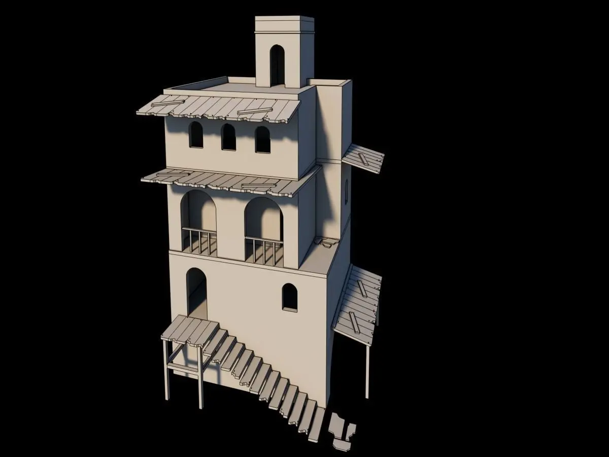 Vivienda de 3 niveles antigua, no tiene modelado el interior solo tiene los pisos de cada nivel y es de estilo caricatura, no pesa mucho ya que esta solo modelado el exterior sin tanto detalle como se ve en las fotos.