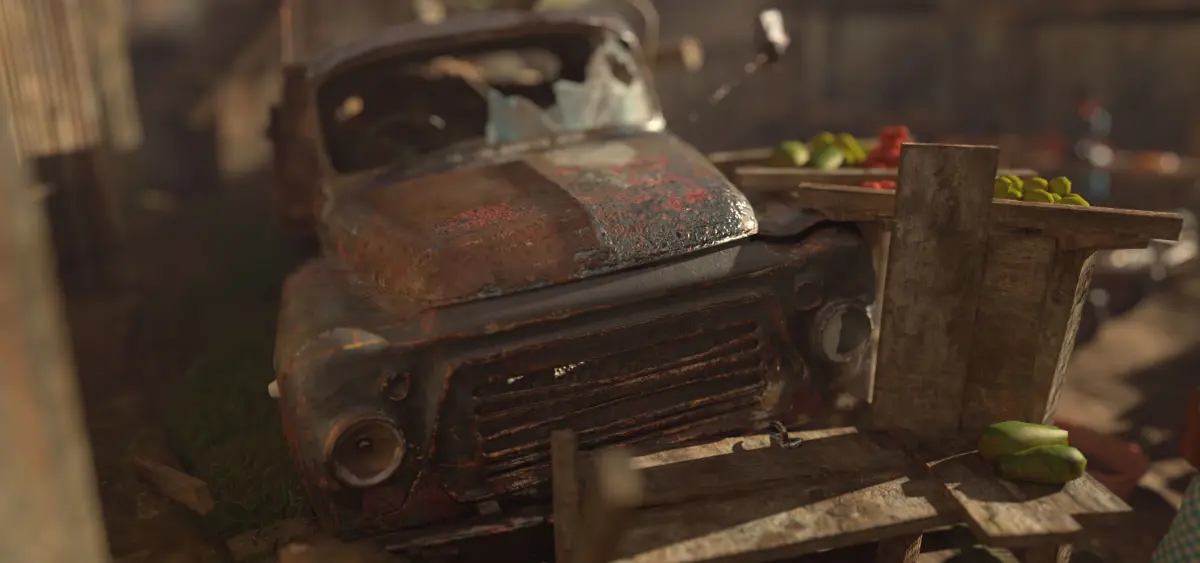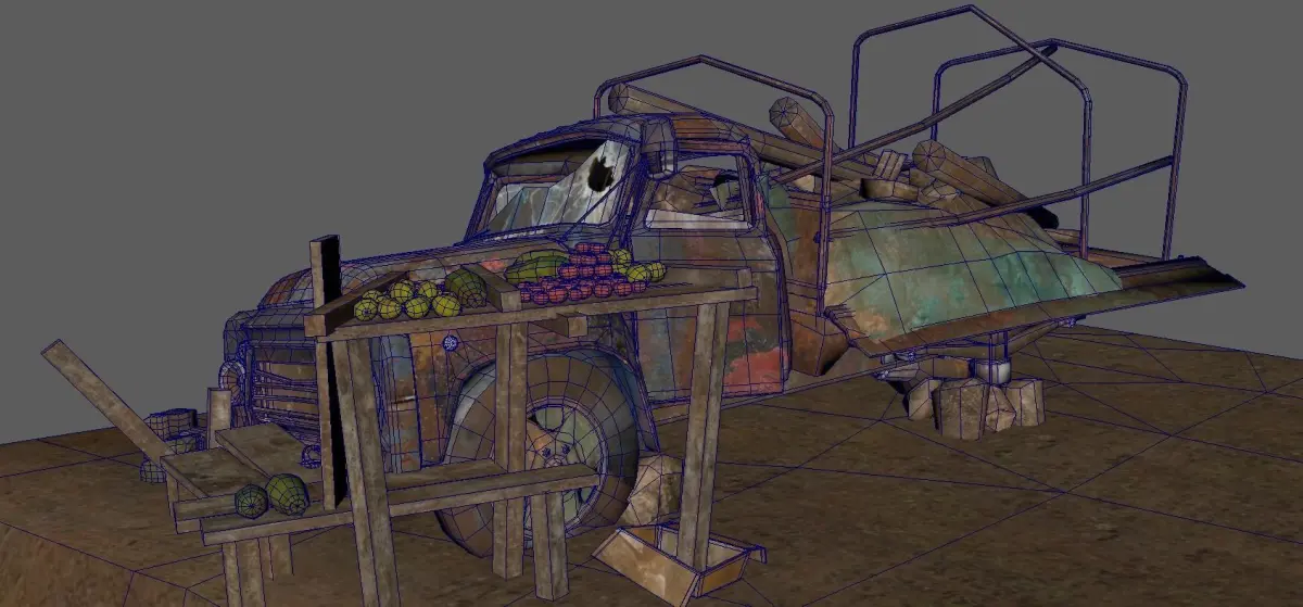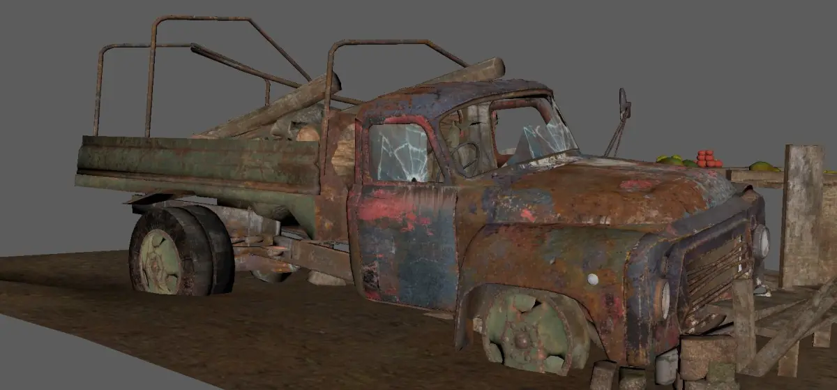 Low-poly abandoned rusty truck.