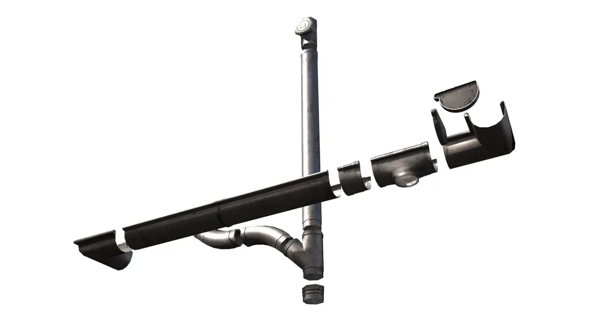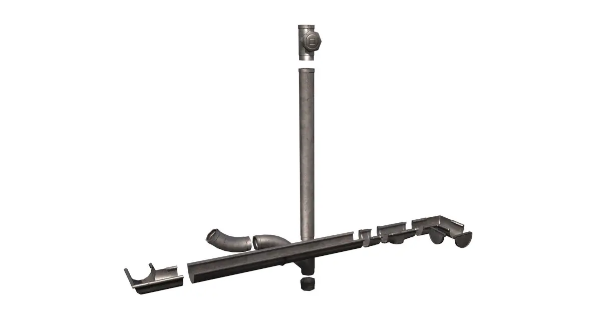 PBR 3D model of Low poly Old aluminium gutter system. Product's features: