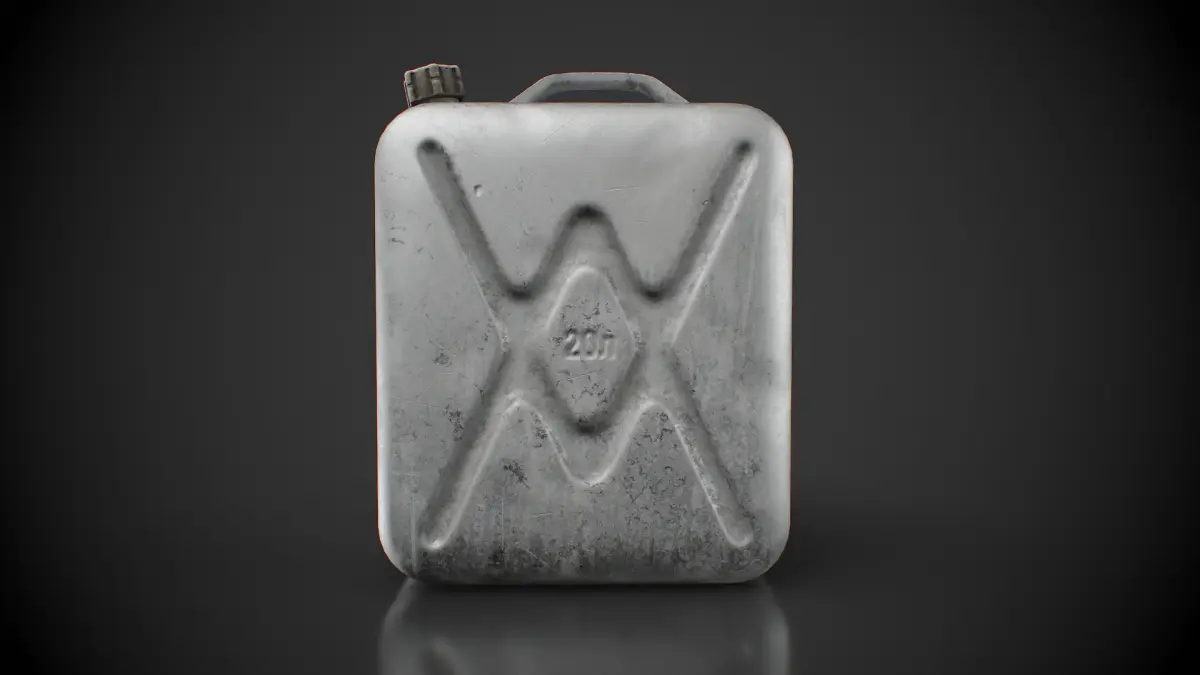 This is a game ready, realistic 3d low poly model of a old aluminum jerrycan, with PBR textures. Originally created with Blender