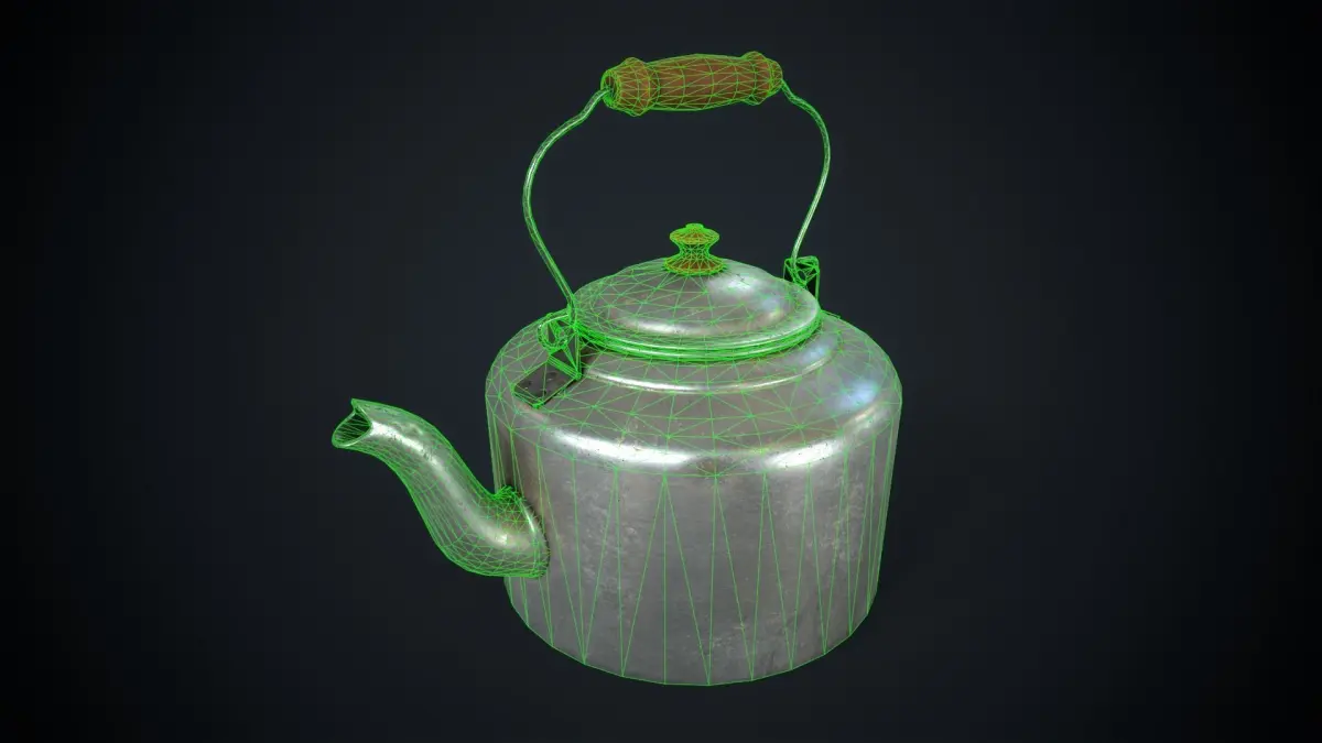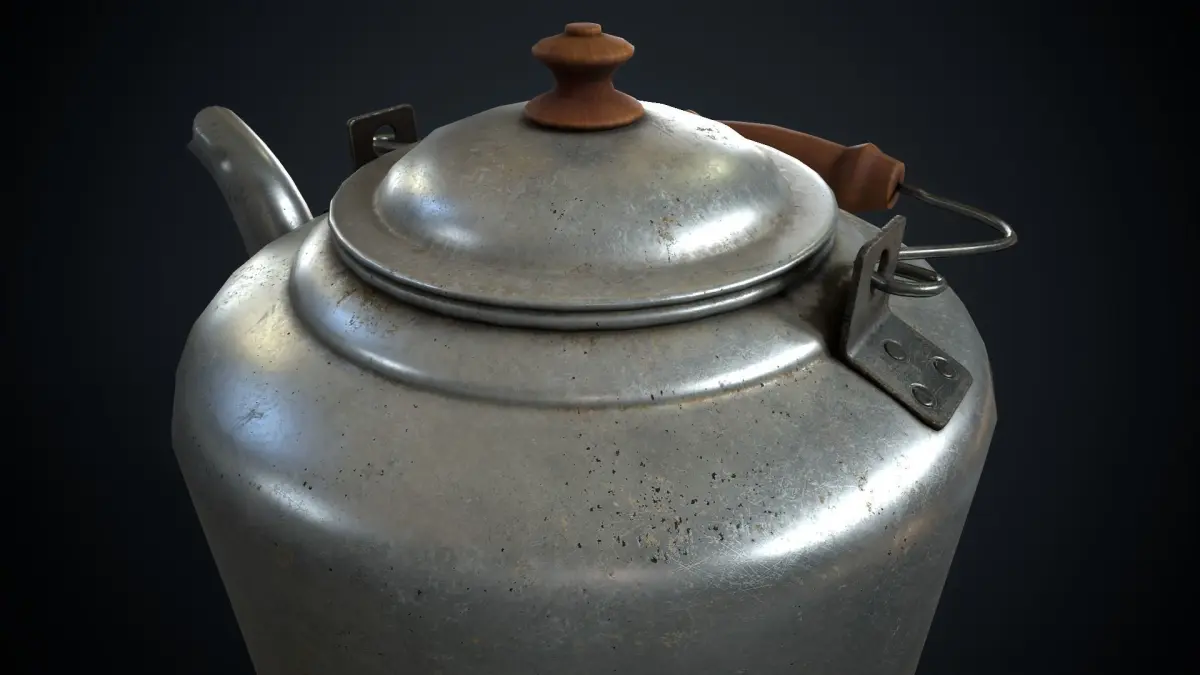 Model of an old aluminum teapot.
