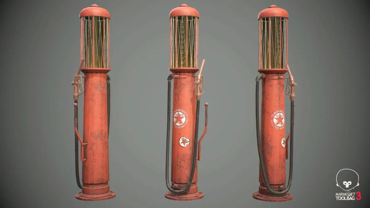 Low poly model of old used gas pump. Rendered in Marmoset Toolbag 3.