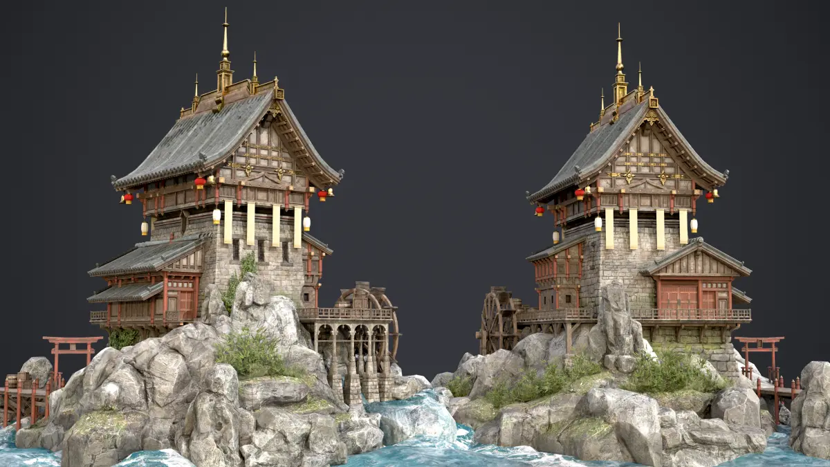 Old Asian BuildingModel and Geometry