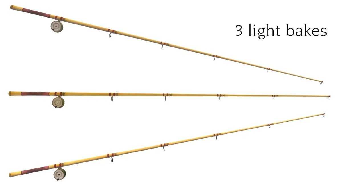 A low poly model of an old-fashioned bamboo fishing pole, suitable for games and VR. 2391 tris.2k textures - Base Color, Normals DirectX, Normals OpenGL, Metallic, Roughness, Height, Diffuse with 3 different light bakes.