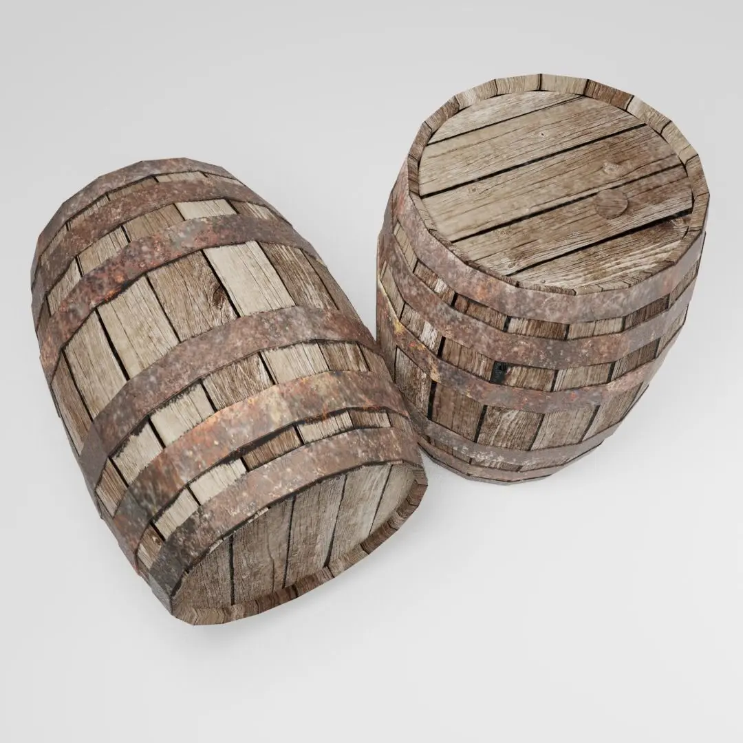 An old rusty barrel in low-poly for isometric or normal scenes and video games.