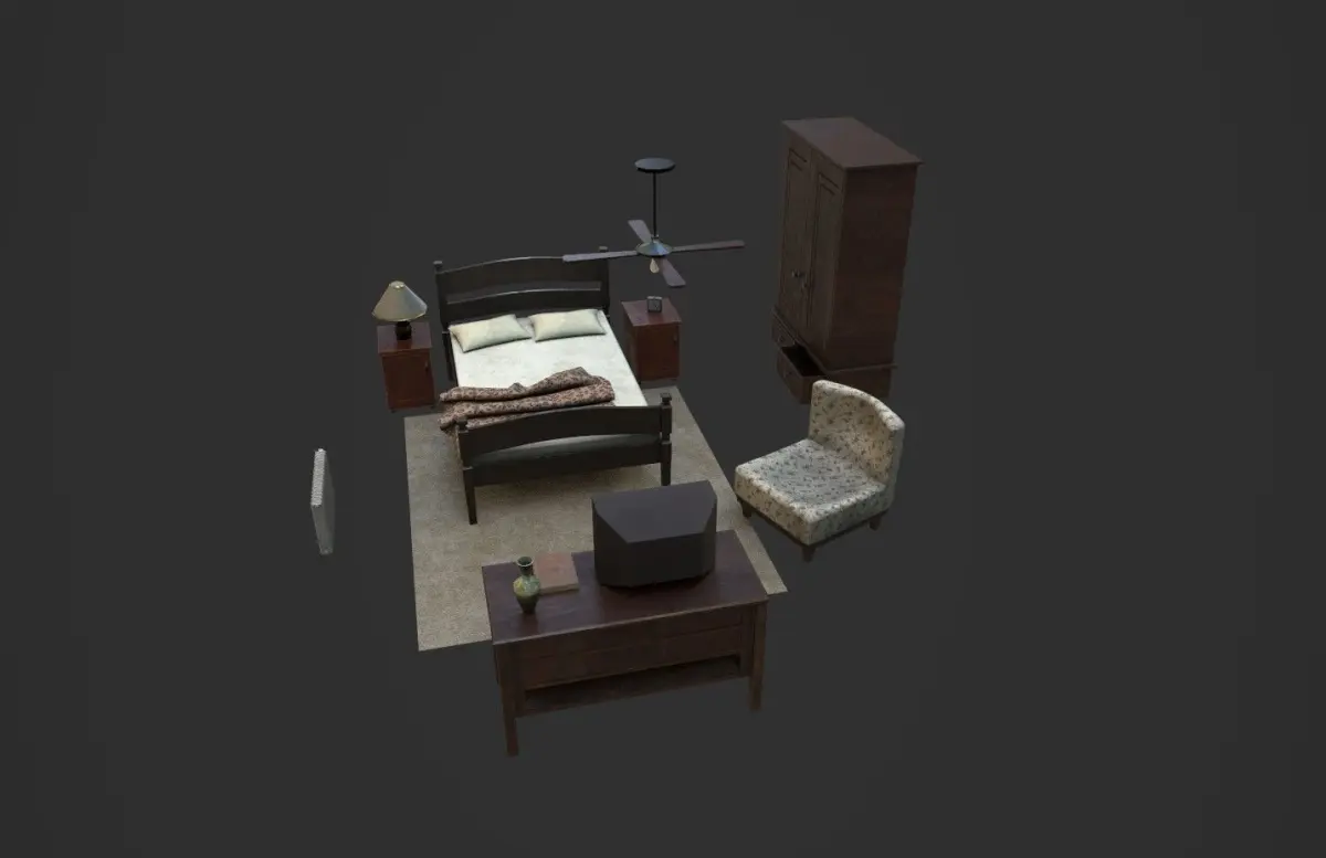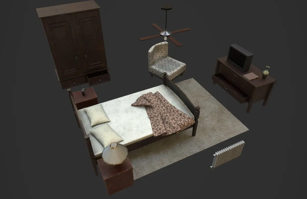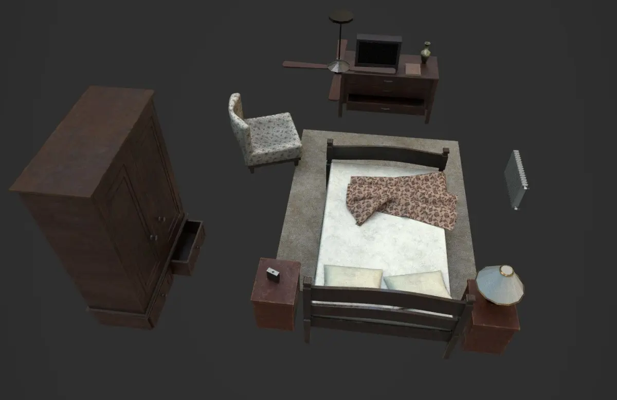 - Nightstands (the door is separated, so you can open it) - 92 vertices