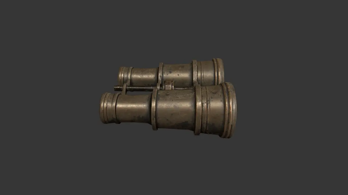 Vintage Style Binoculars High detail PBR textures, used rusty and scratched finish.