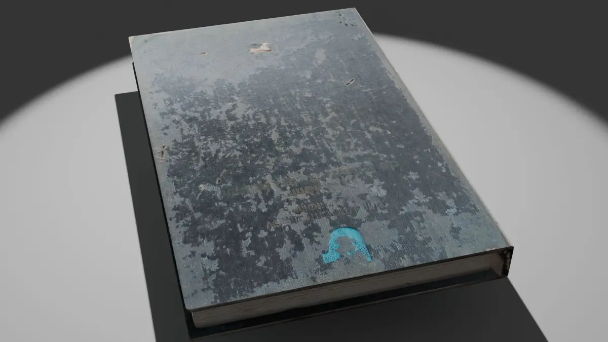 It's an old, black book with a worn, age-worn cloth cover. The edges are frayed, and the surface is very slightly dusty, evidence of many years spent on a shelf. The title, in gold letters, is barely legible.