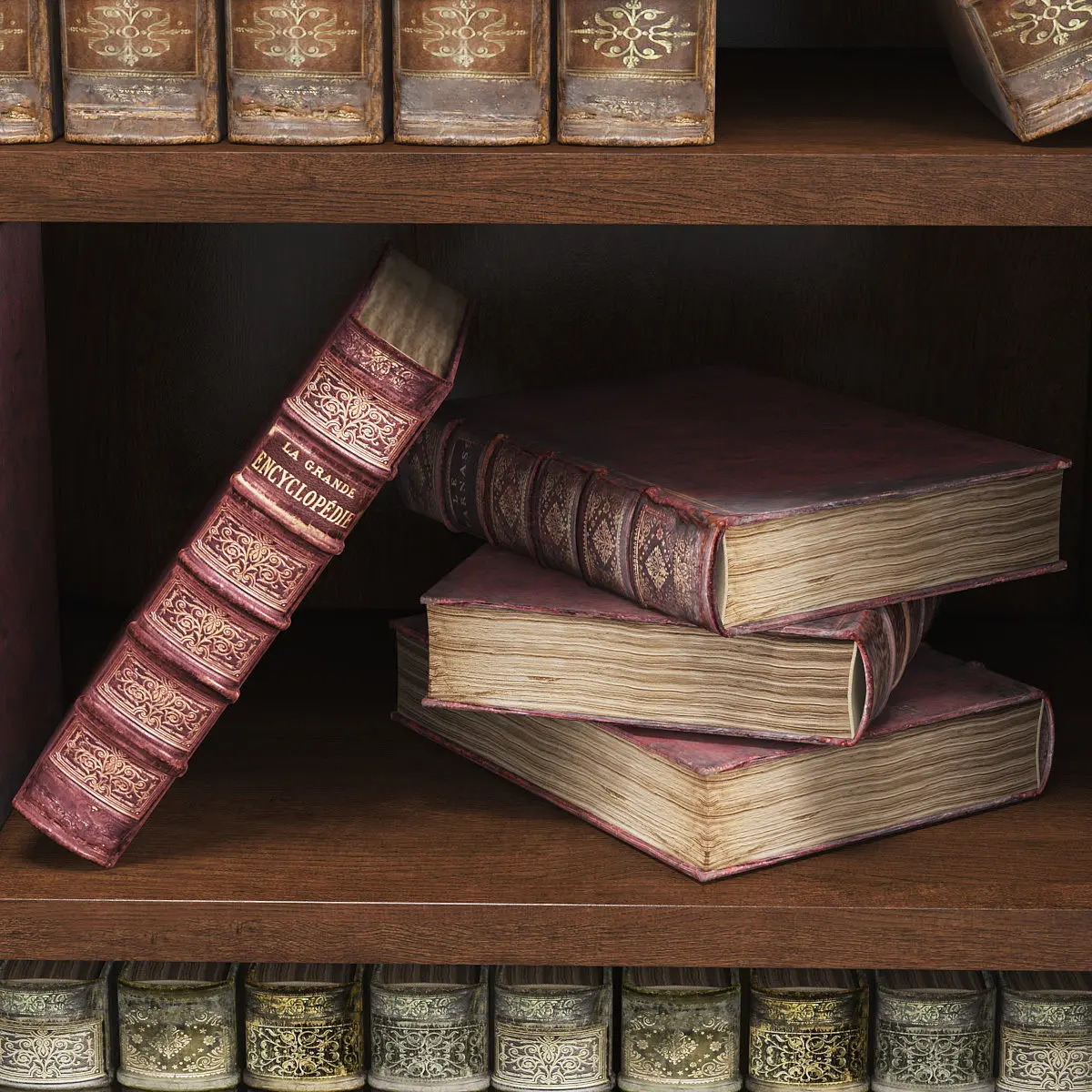 Old Books Library . CabinetPanamar 825Files for V-ray and Corona Render + FBX