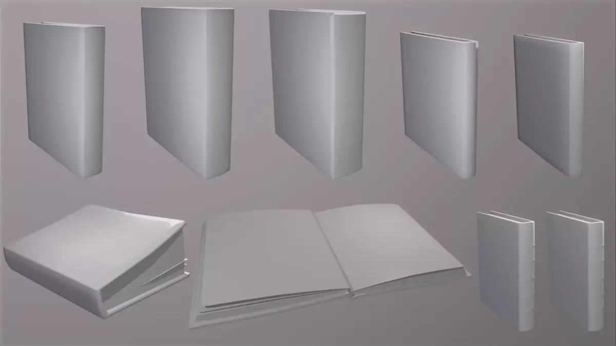 - Clean topology and efficient geometry (326-1,019 polygons / 652-2,018 triangles per book, 7,170 polygons / 16,256 triangles total)