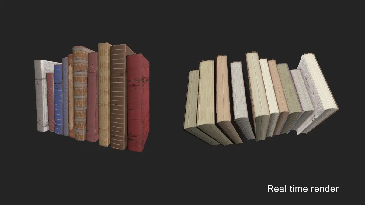 Each book has 252 polygons, and the whole pack together has a total of 2520 polygons. There's no material made in Maya and no lighting scene.
