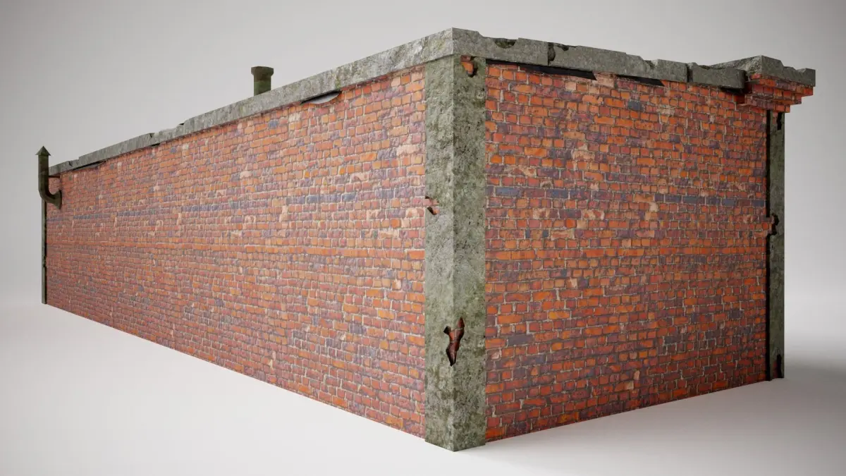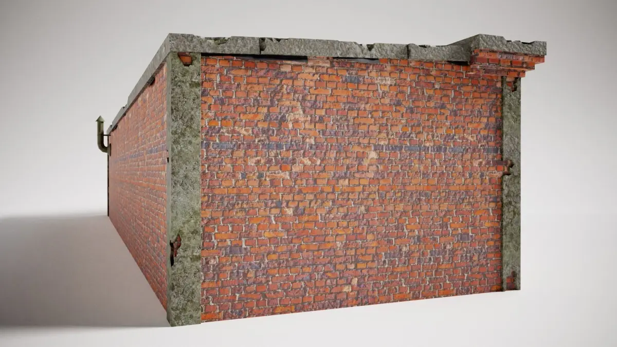 - This product consist low polygon PBR model of old brick damaged garage