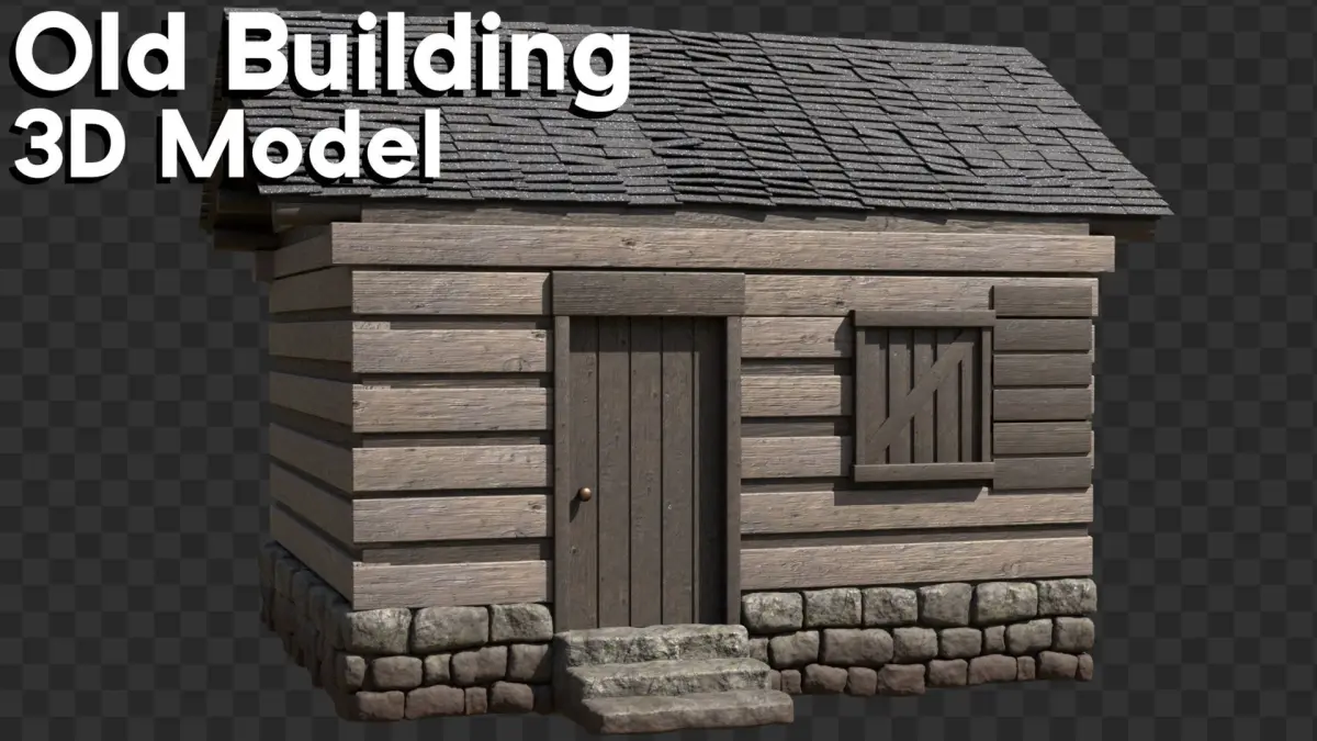 An old wooden building 3d model, with a stone foundation. This 3d model was created with Blender. The texture maps are 2k and 4k resolution.