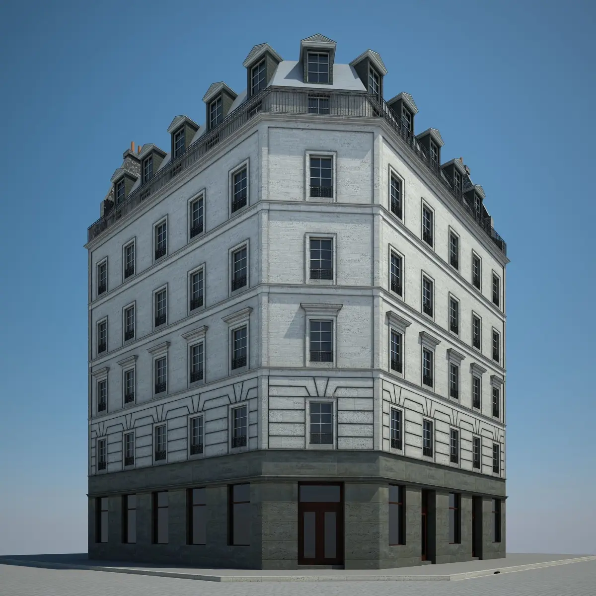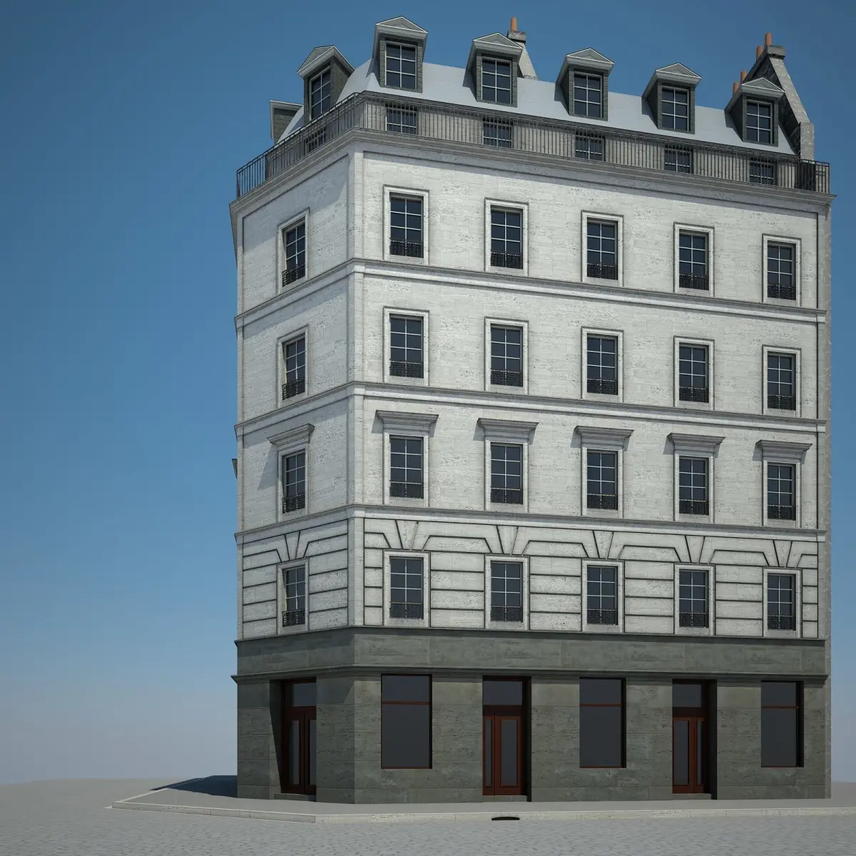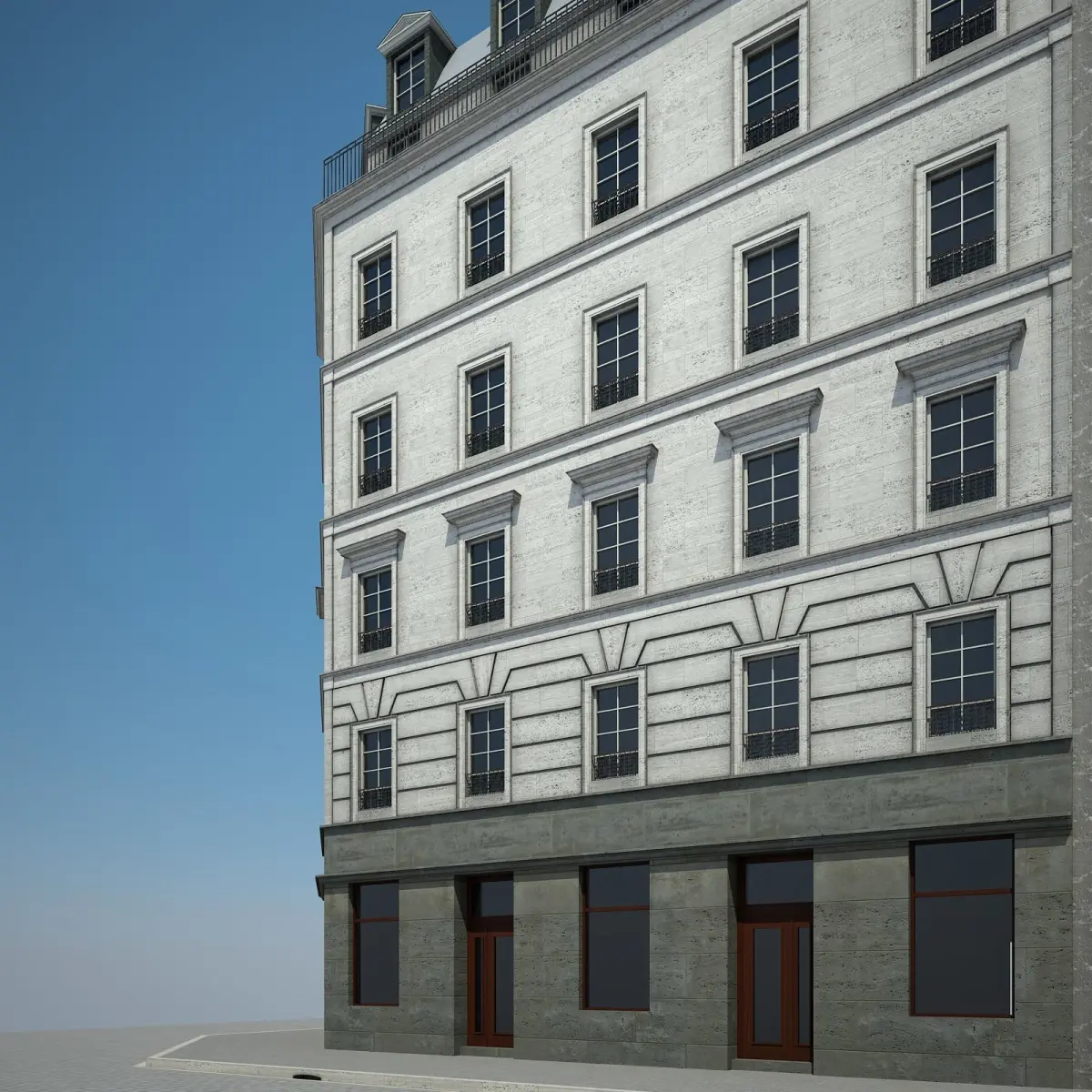 Detailed model of an european city building. Preview images have been rendered with Vray.