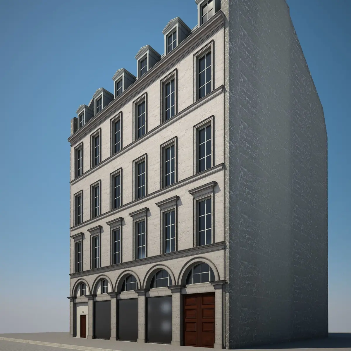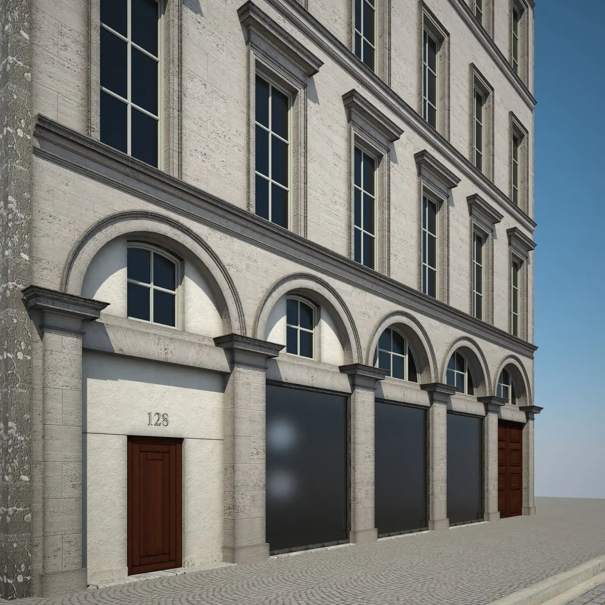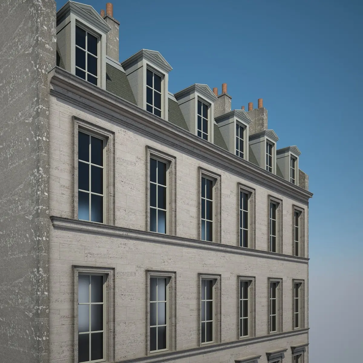 Detailed 3D model of an urban historical building.
