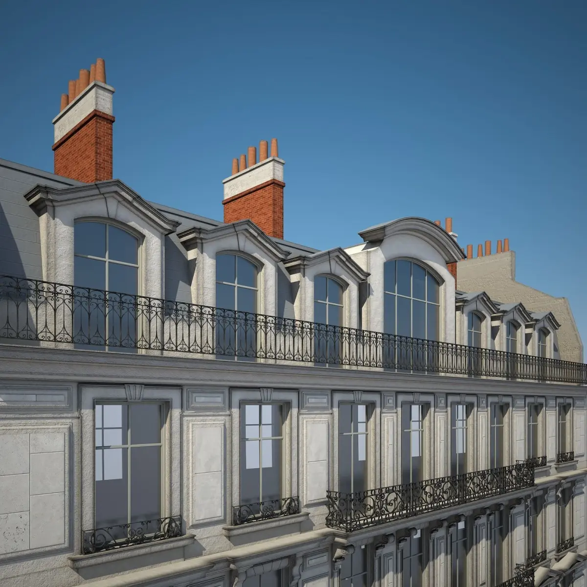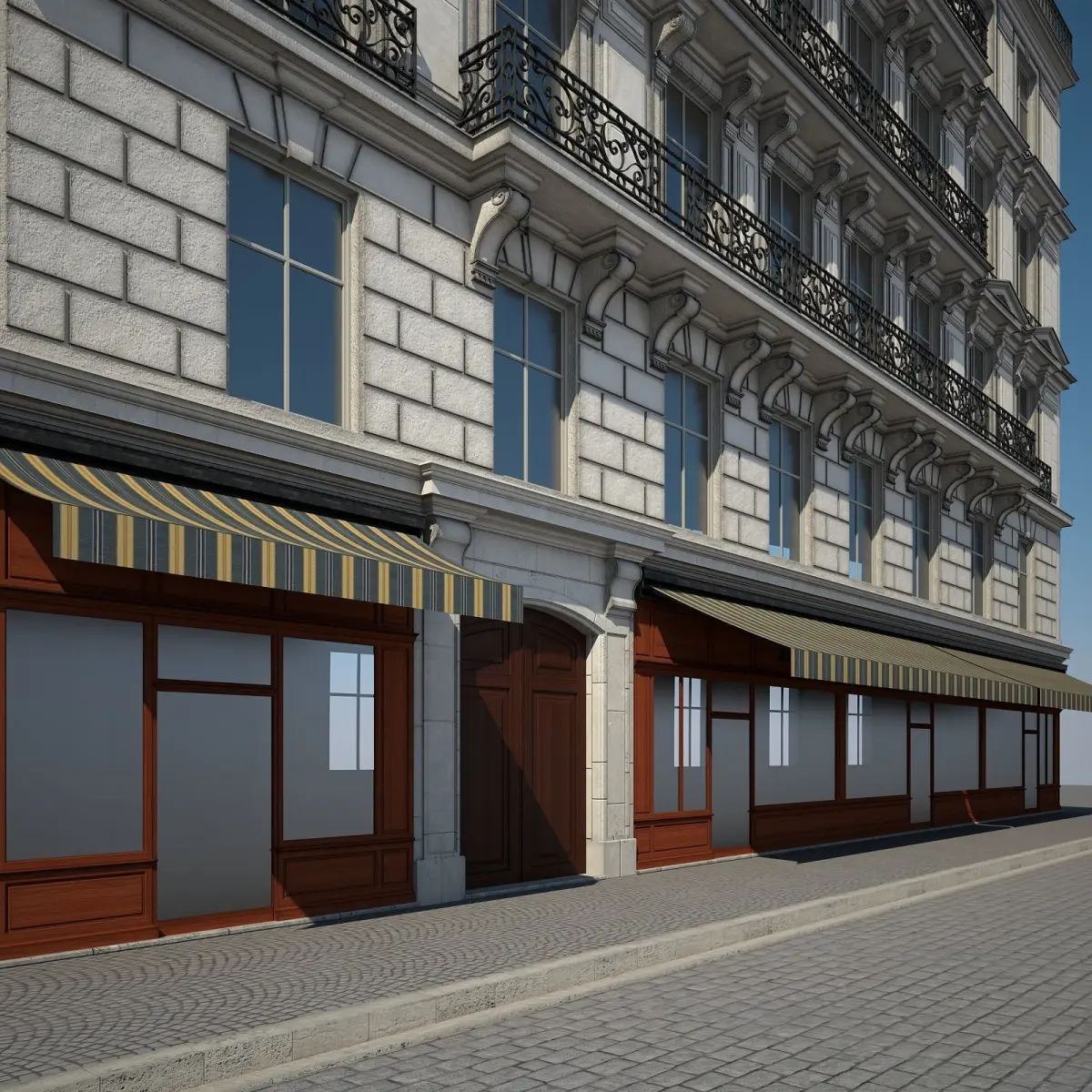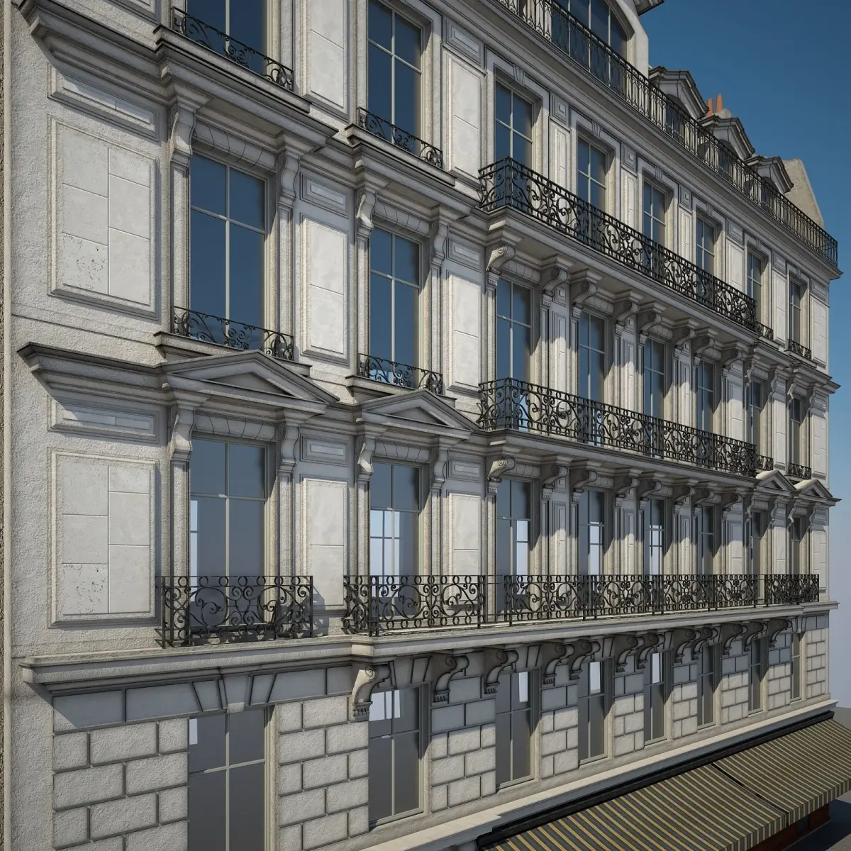 Detailed 3D model of an urban historical building.