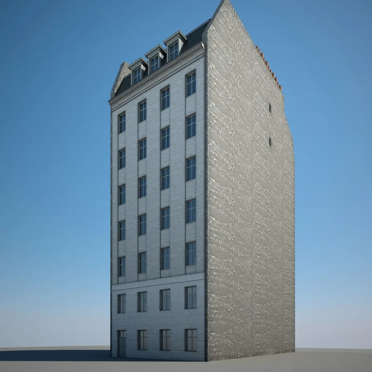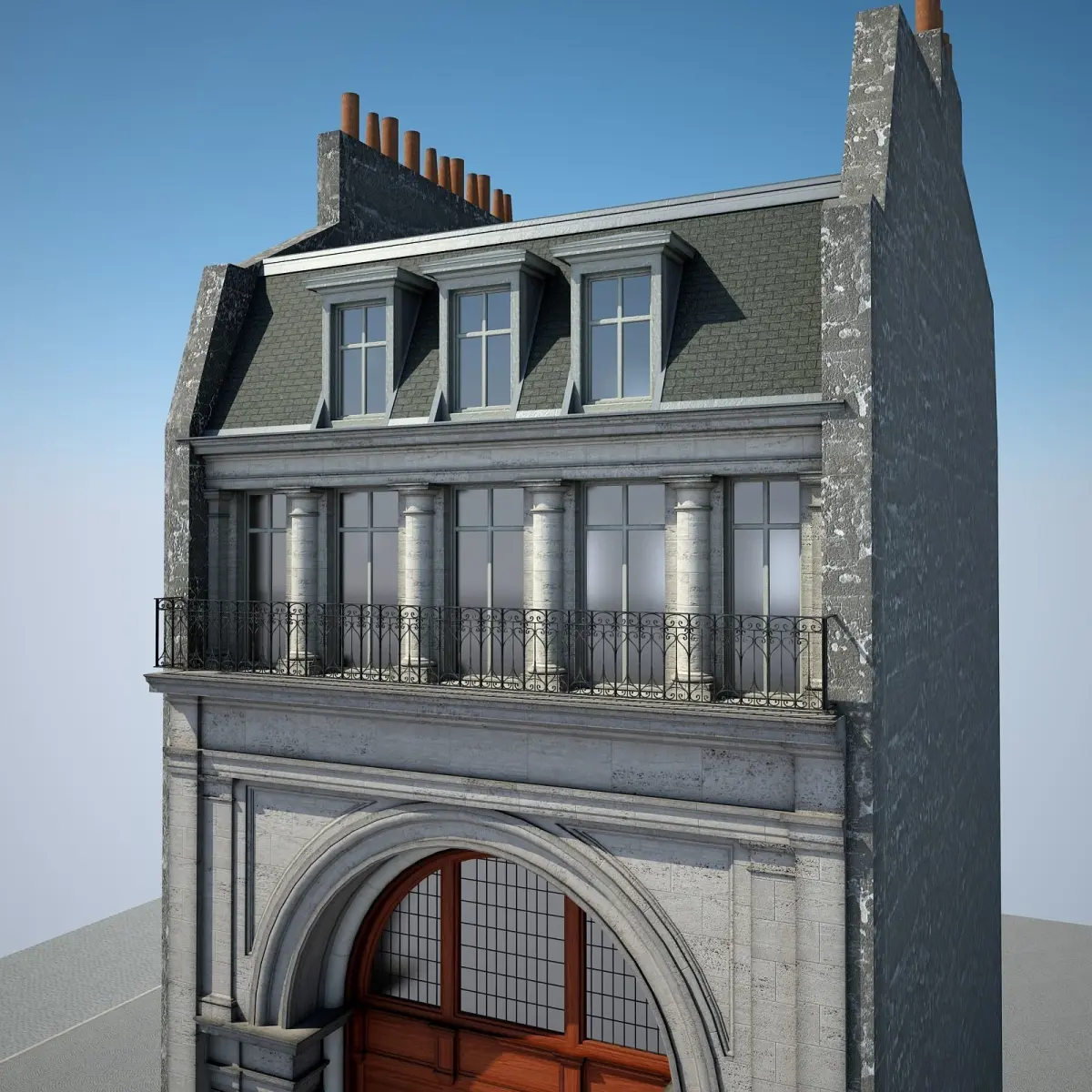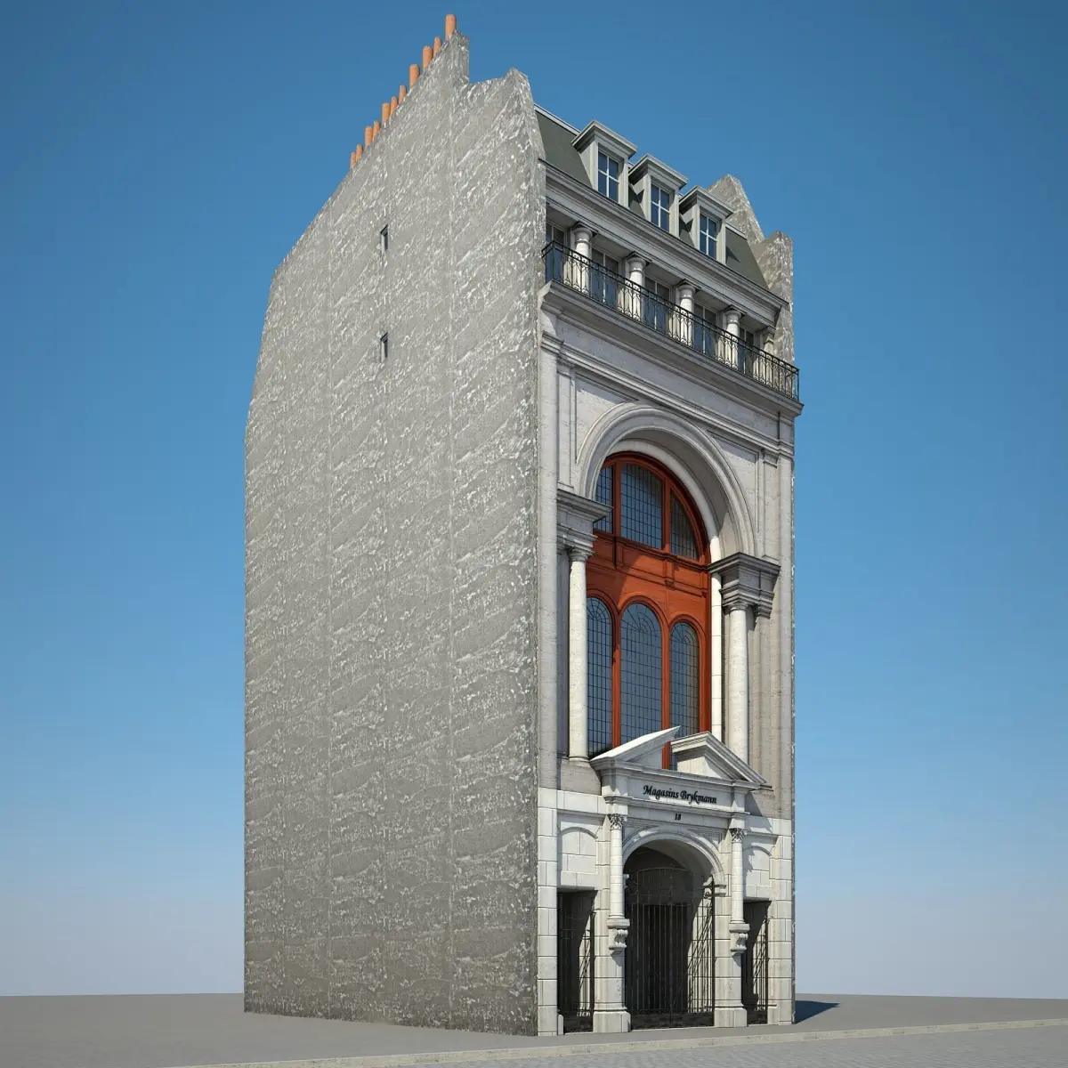 Detailed 3D model of an urban historical building.