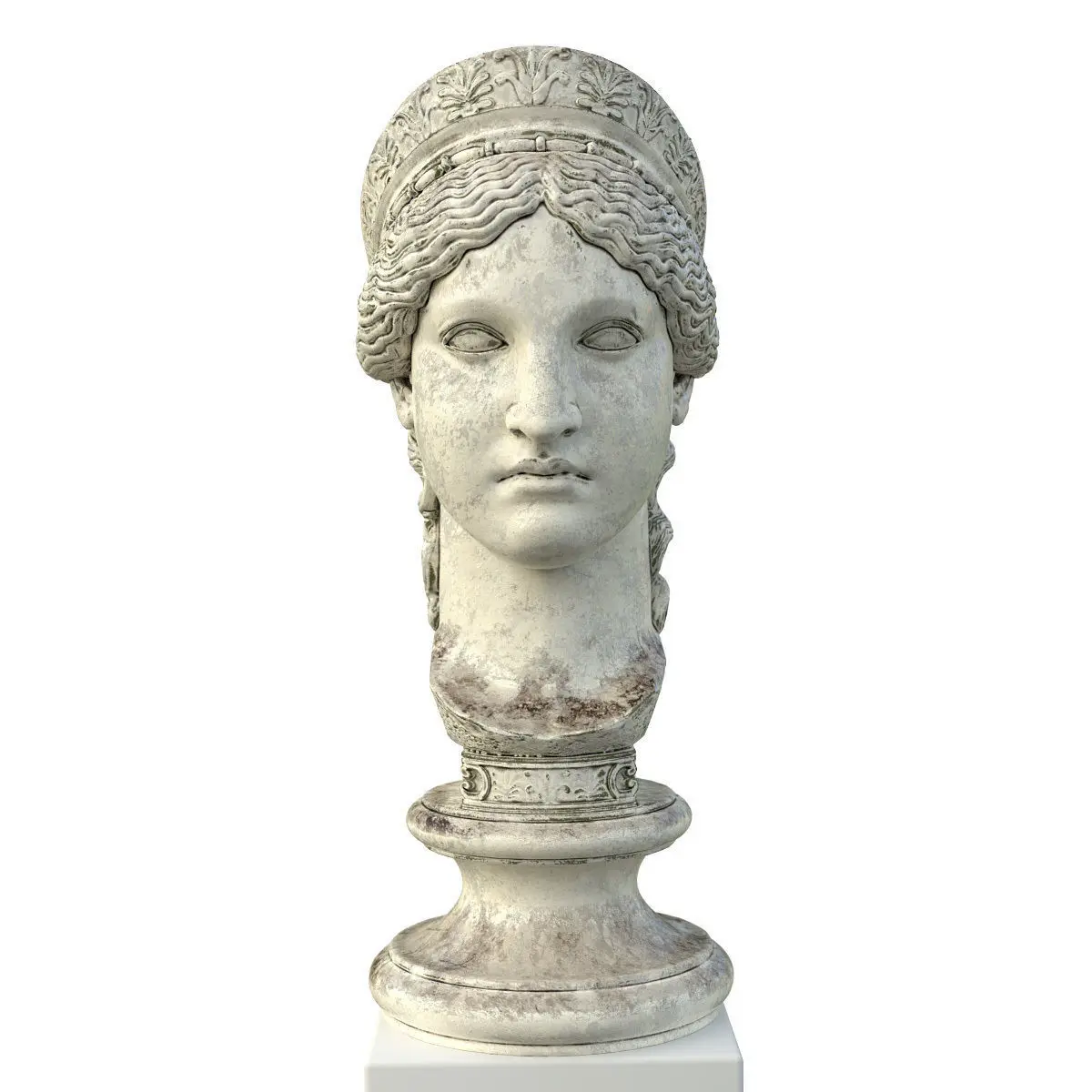Very accurate 3D model of a bust of Hera. Enjoy the fantastic details of this sculpture! The very best you can find! Rendered in Blender 2.8 with Cycles with an old stone material and high resolution textures, for very detailed photorealistic renderings. It can also be rendered in realtime as you can see in the turntable! This model is exported in .3ds, .fbx and .obj. Materials and only works in Blender, but textures are still usefull in other formats.