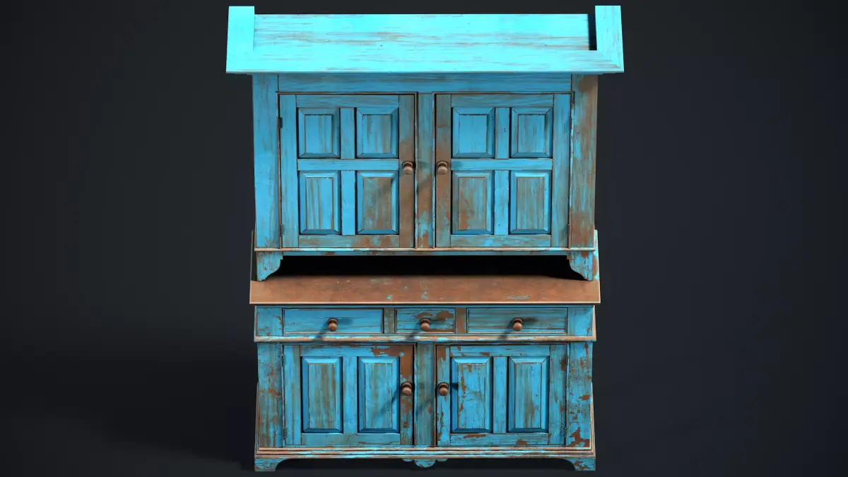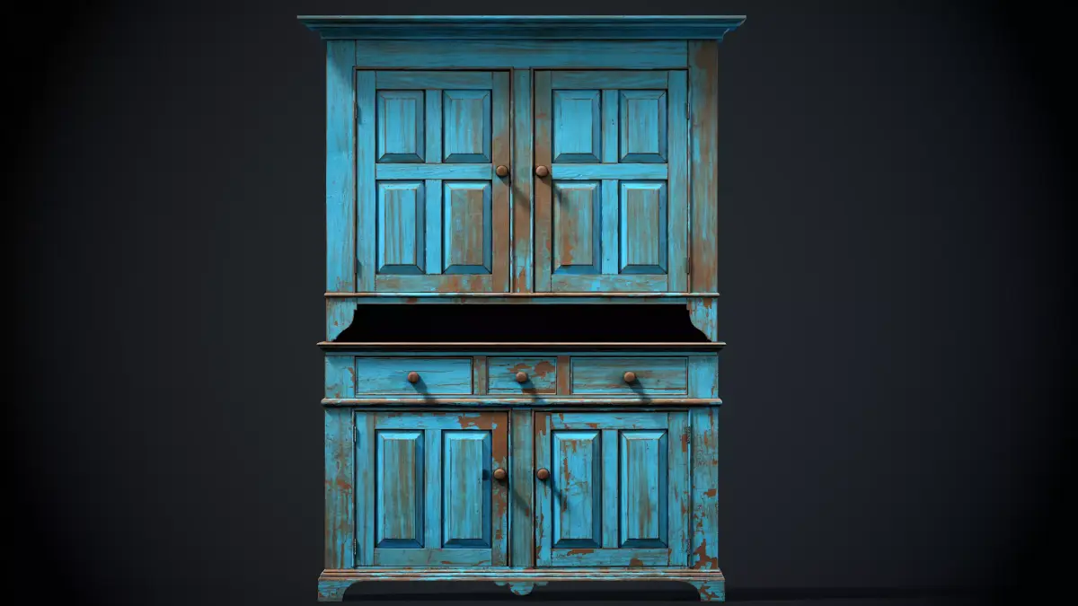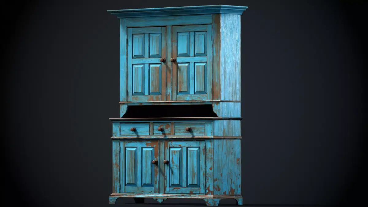 Old Cabinet low poligonal 3D model with texture and UV mapping.