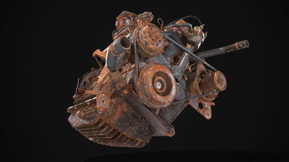 High quality midpoly 3D engine model, great for decoration or creating a junkyard scene.