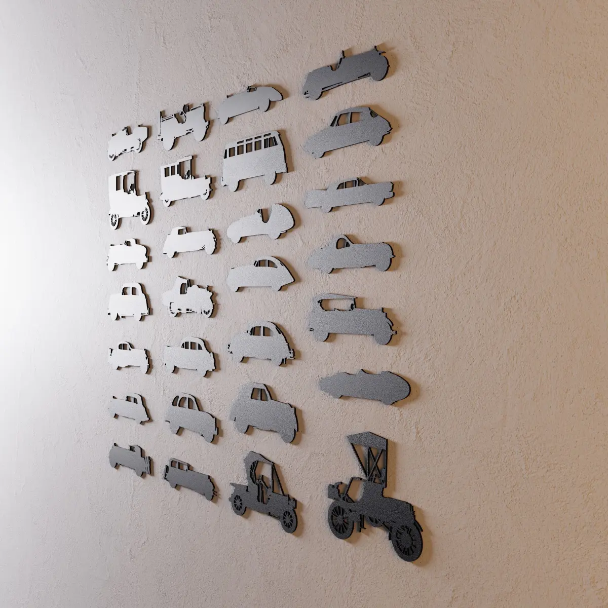 - 28 contour of old cars in 3D. The thickness is 2 mm, so it can be used for 3D printing.