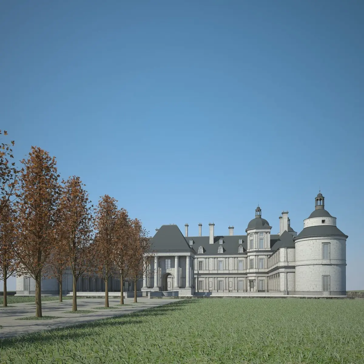 Highly detailed 3D model of a chateau.