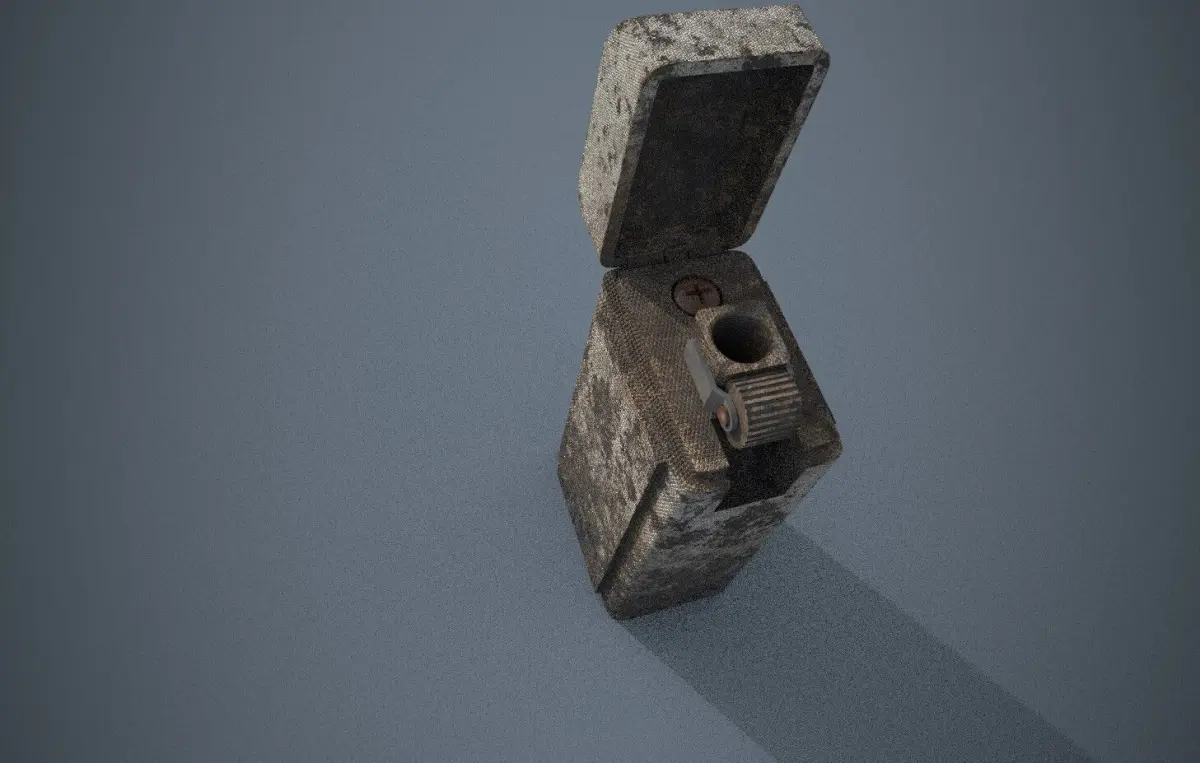 Old rusted lighter with high-quality texture. Designed in Rhino, processed in Blender 3d with high-quality textures created in Adobe Substance 3d. Texture maps include base color, roughness, height, normal and more.
