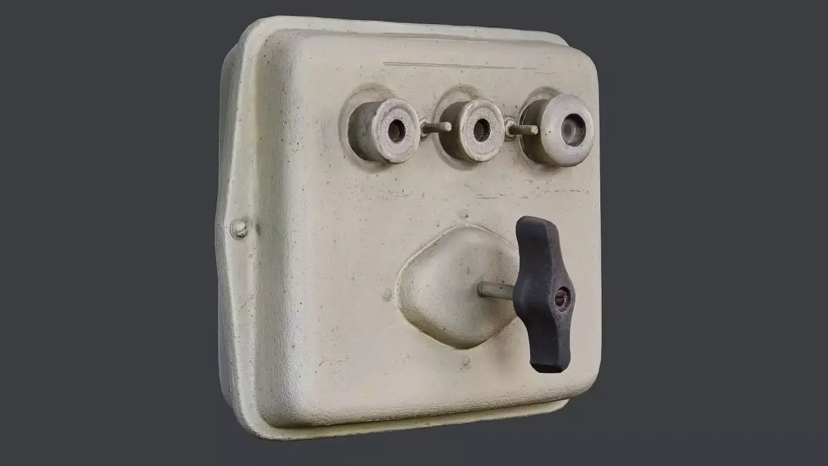 3D model of old electrical circuit breaker box with a large switch. The model was aquired by photo scanning real object and carefully cleaning and processing data. PBR materials were crafted by hand. There is no AI tools involved in the process of creation this model.