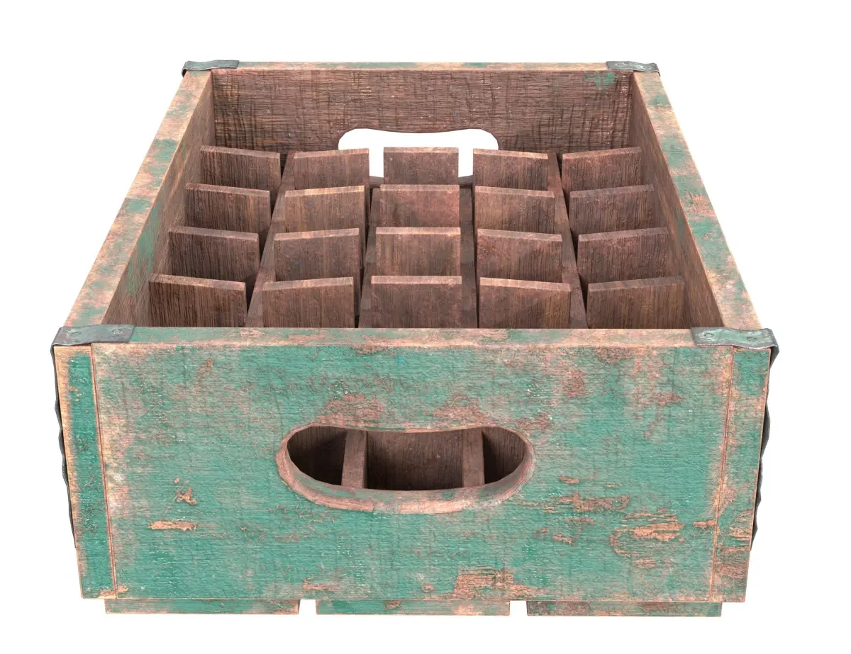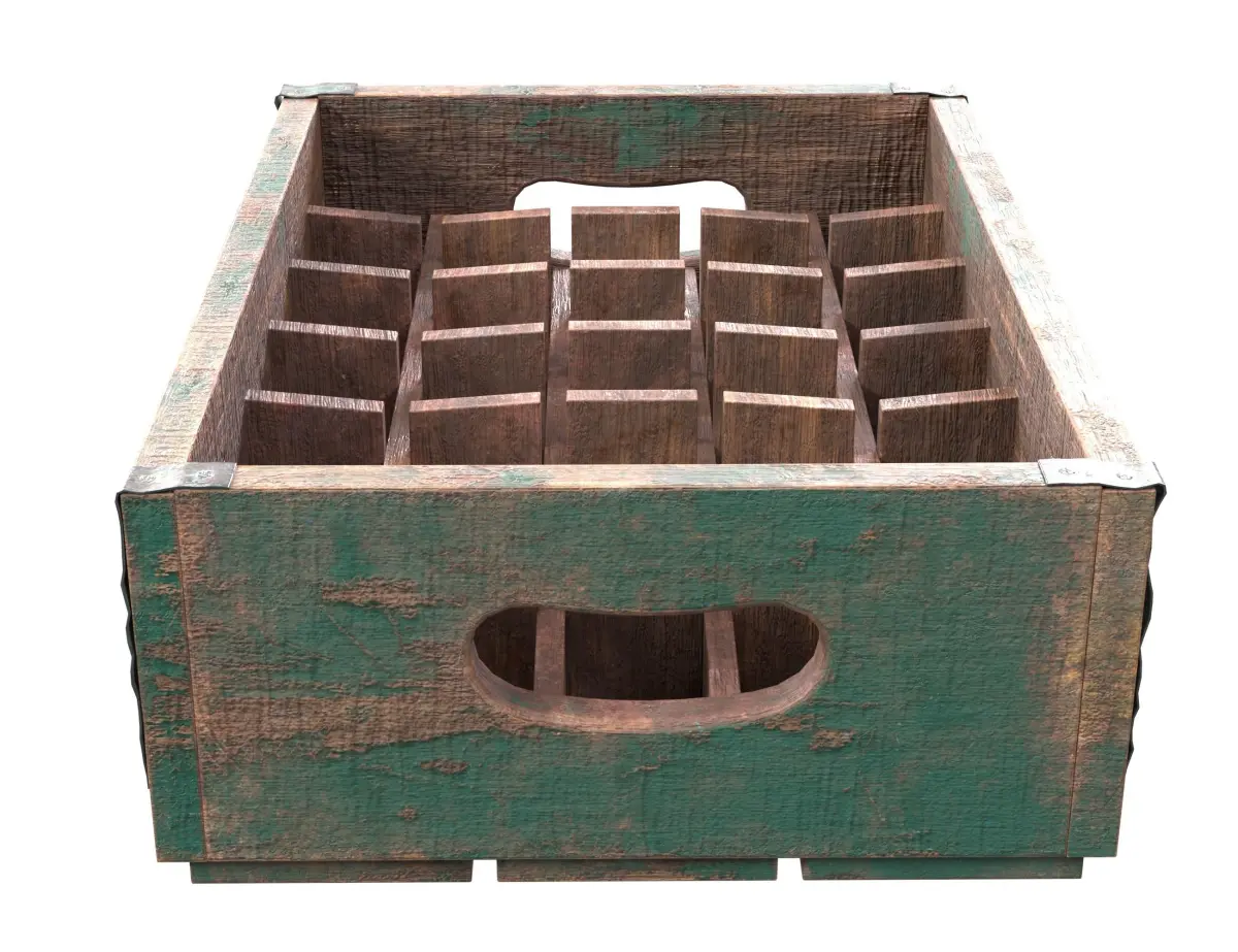 Lowpoly model of Old desolated wooden box for beer or alcohol carriage with citra label . Can be used as game asset or render prop in your scene.