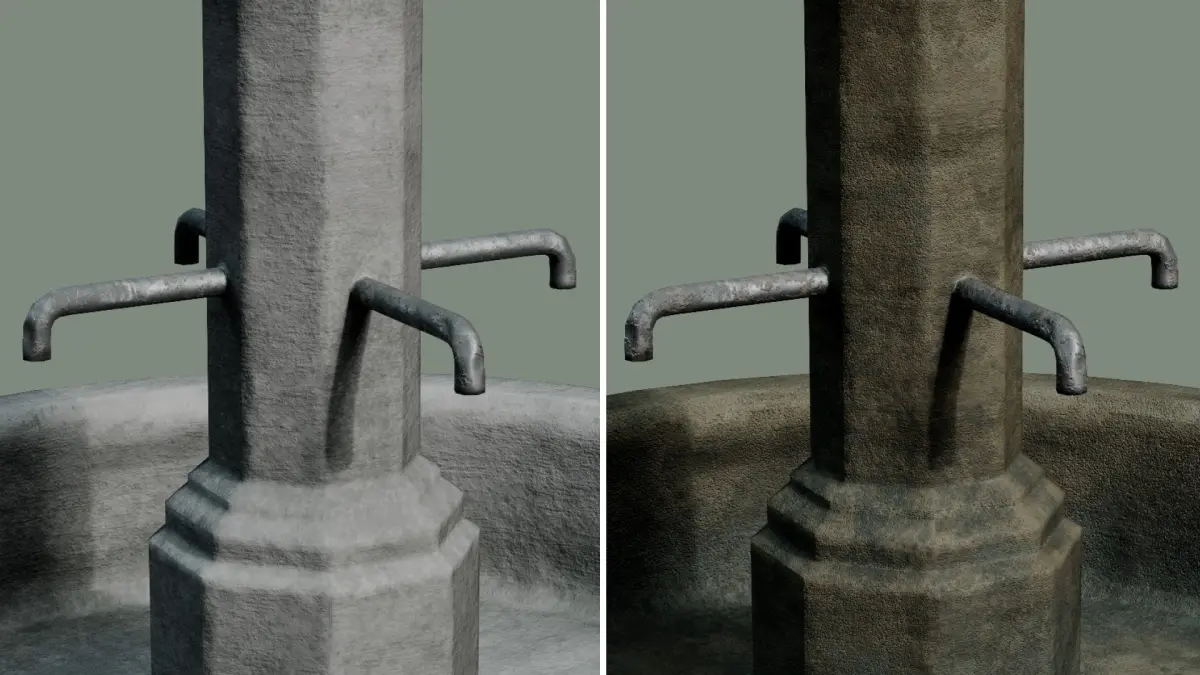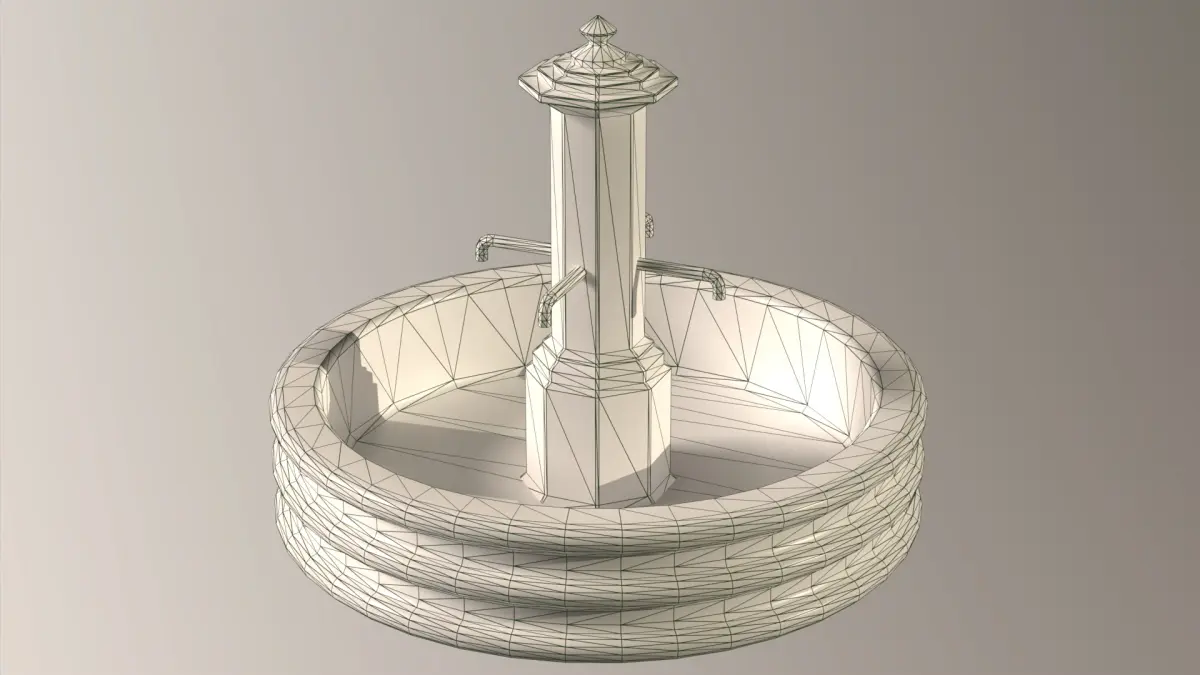 3D game ready model of ancient concrete and marble stone garden or city square building - waterless, dried up fountains. You can fill the fountain with water.