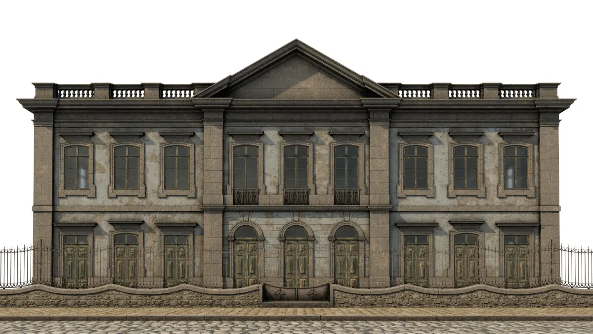 Detailed model of an old Classical building. Suitable for high resolution close-ups. Real world scale. Cameras are placed at eye level (~1.68m / 5'6'').