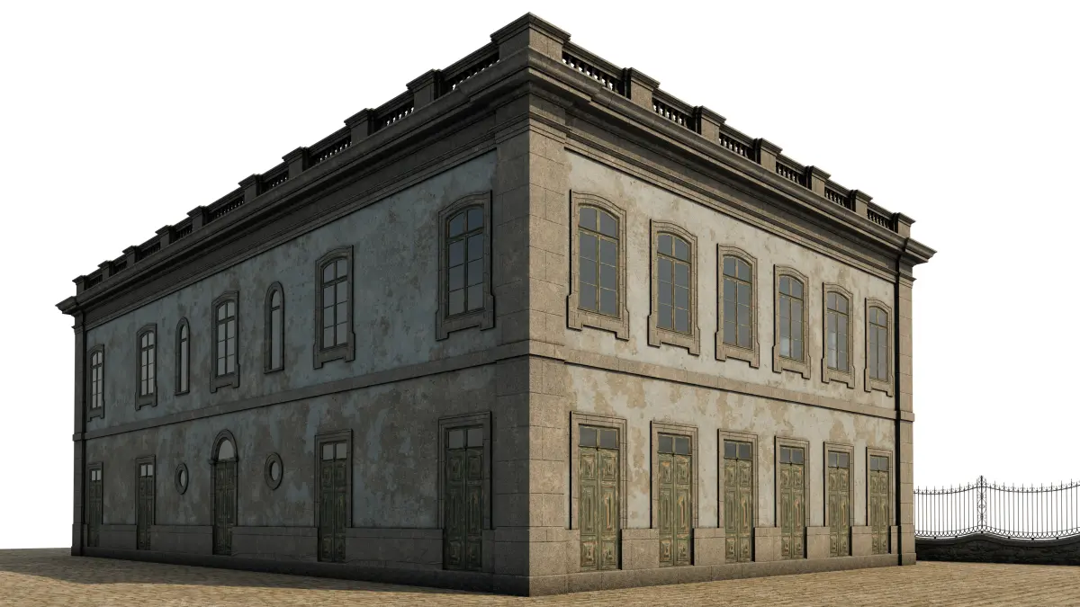 The model is fully textured with Hdri system. Hdri and cameras are included in the file. All objects have names and are organized with layers according to type of object. The model is composed of different objects: wall, door frame, window frame, metal fence, etc. The model uses PBR materials.