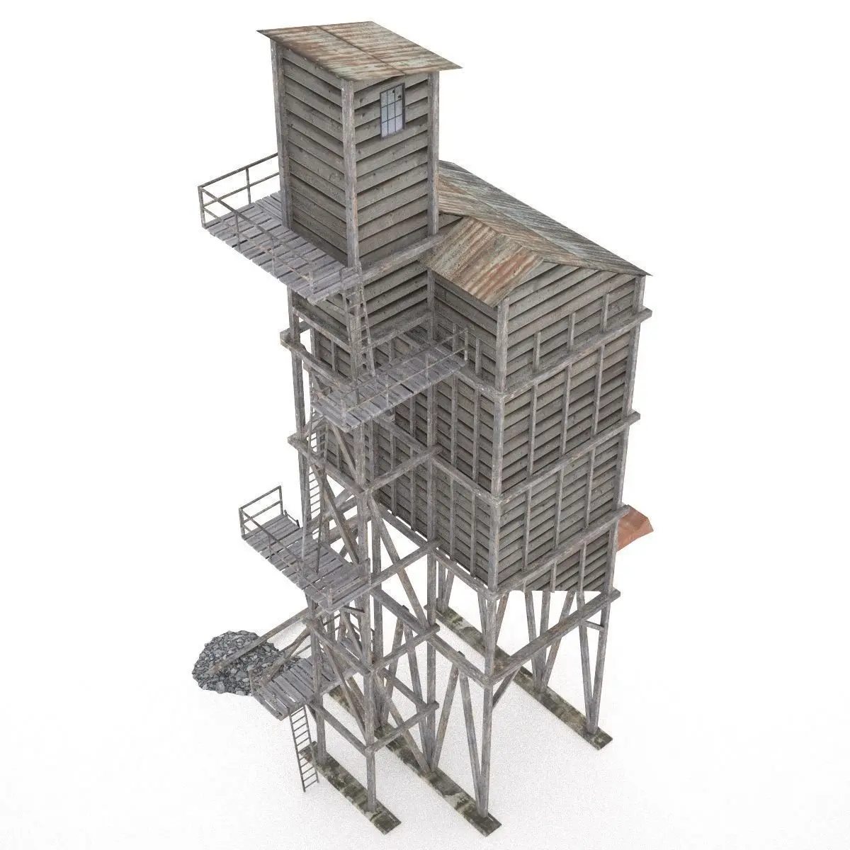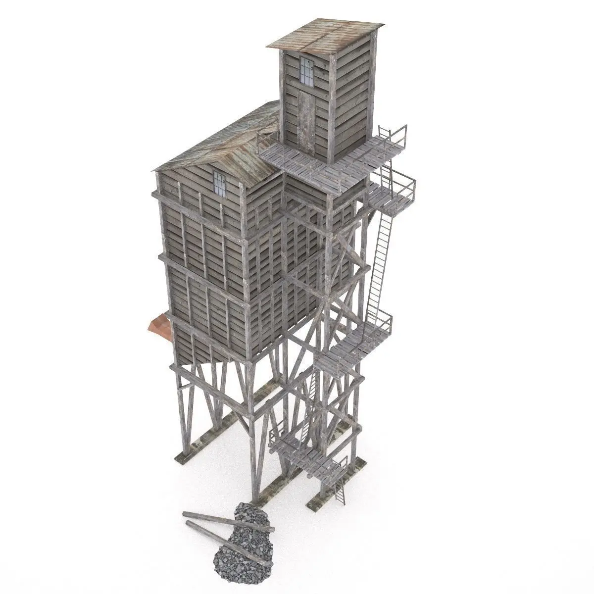 An old industrial wooden coal tipple for railroad scene.