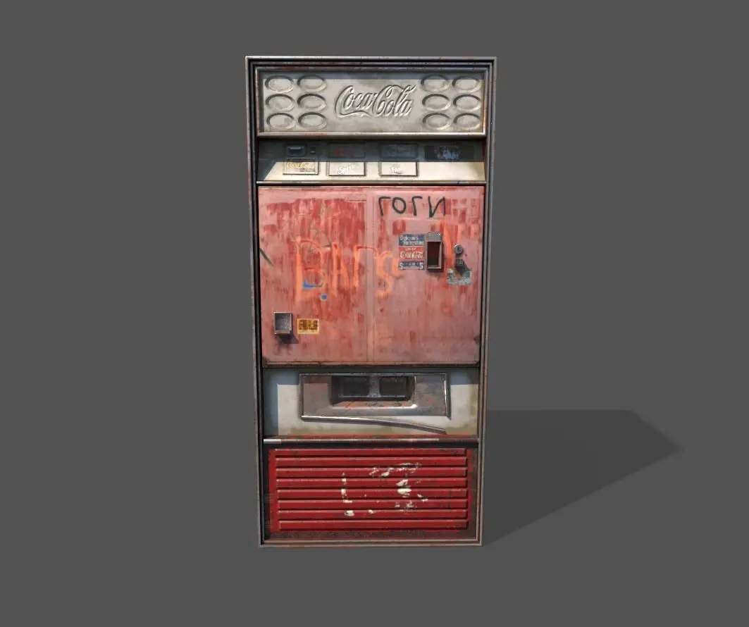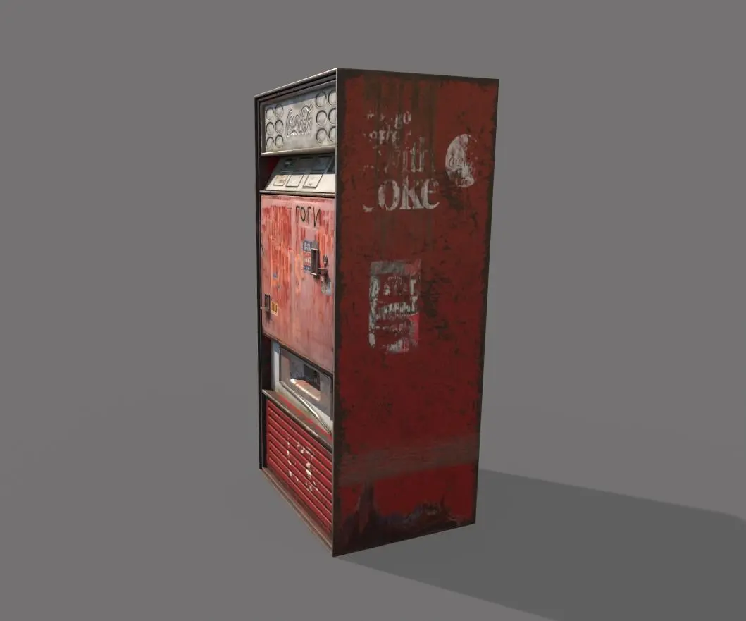 Model of old cola machine.Model has 1 PBR material.Maps are diffuse-specular-glossiness-height and normal. Model's textures has two sizes; 4096x4096-2048x2048. All maps are PNG formats and unwrapped-non-overlapping.