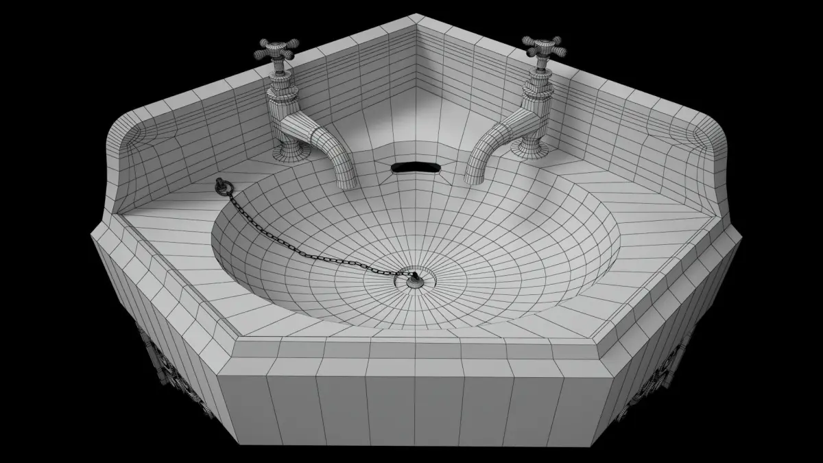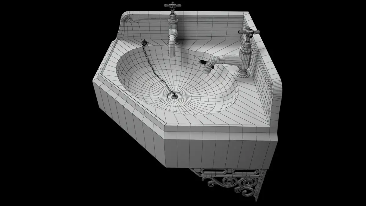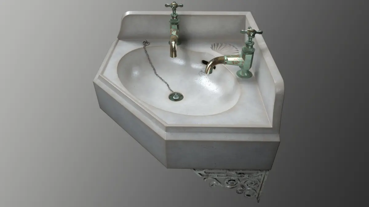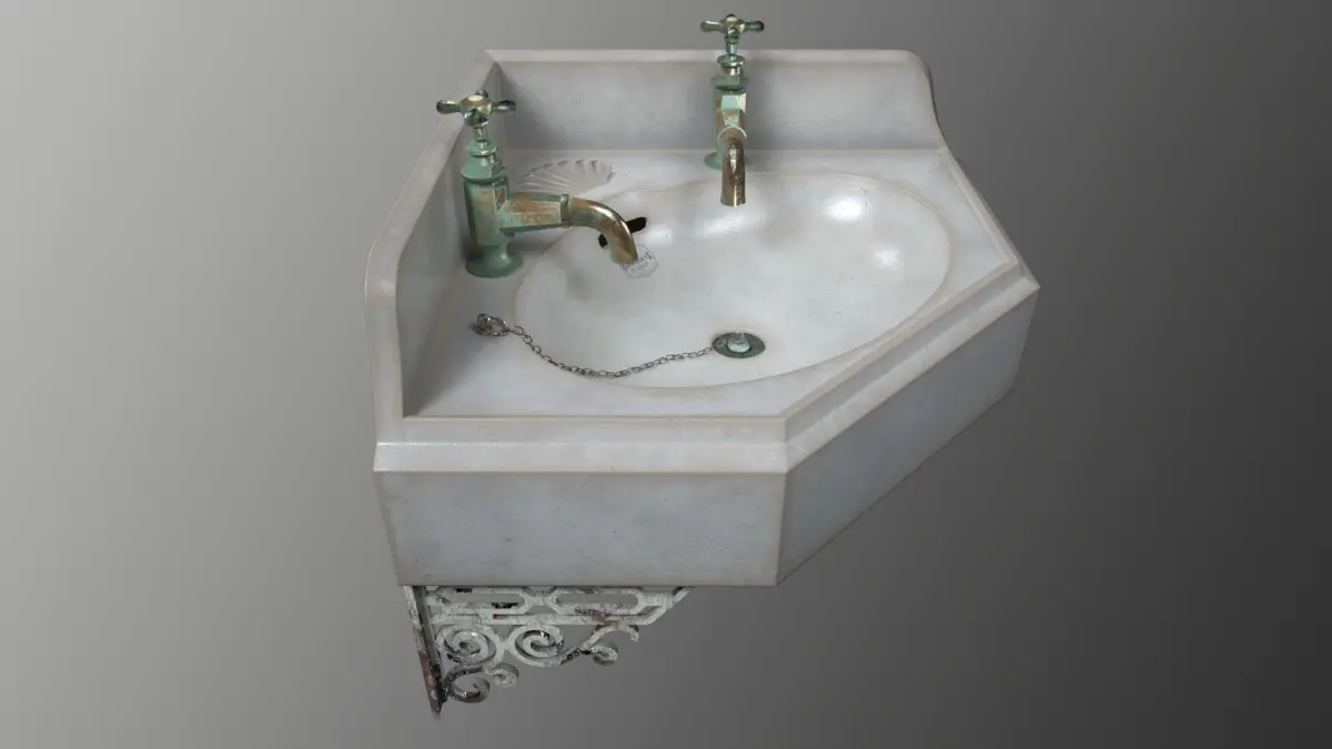A 3D Model of a Old Corner Sink/Wash Basin. PBR Metal-rough workflow used. All maps/texture are included.