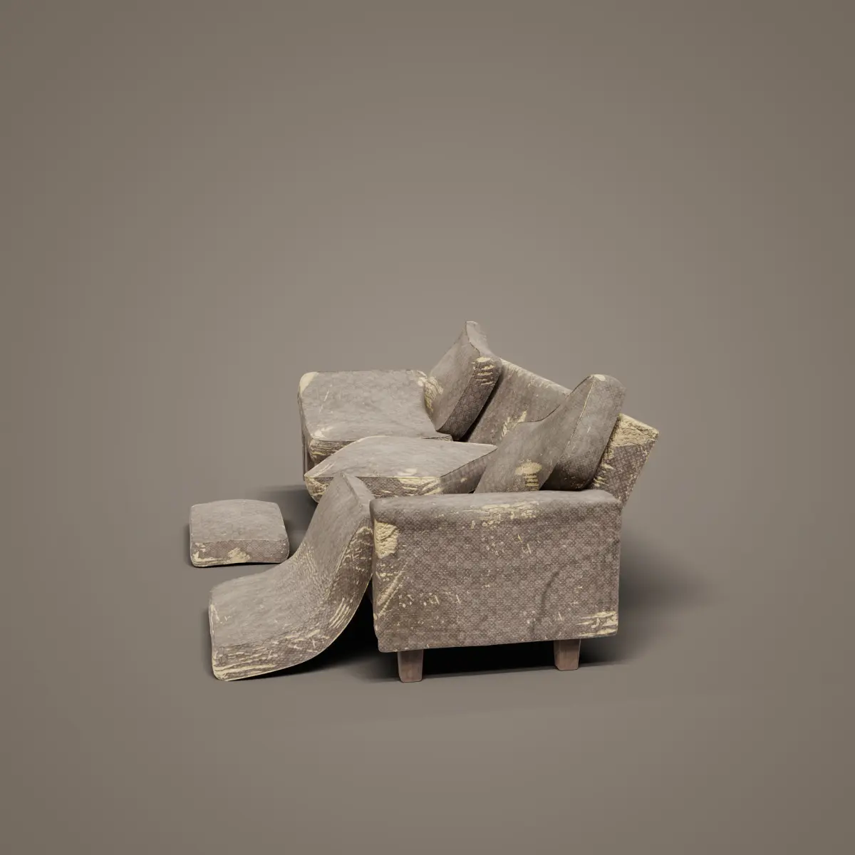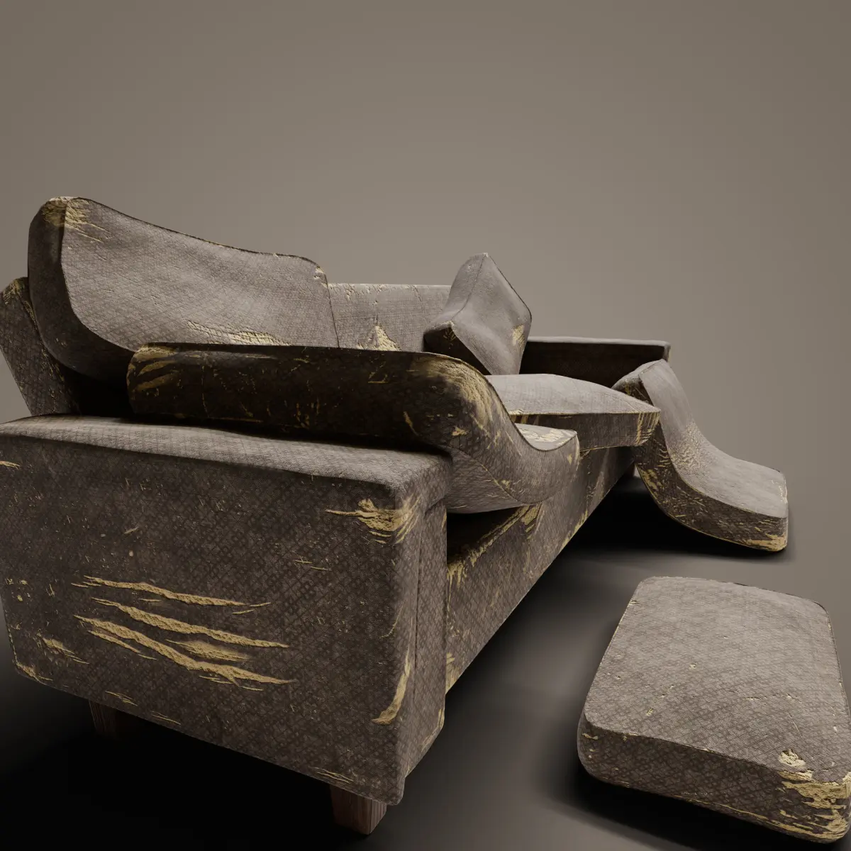 Old broken couch, modelled with Blender, textured in Substance Painter.