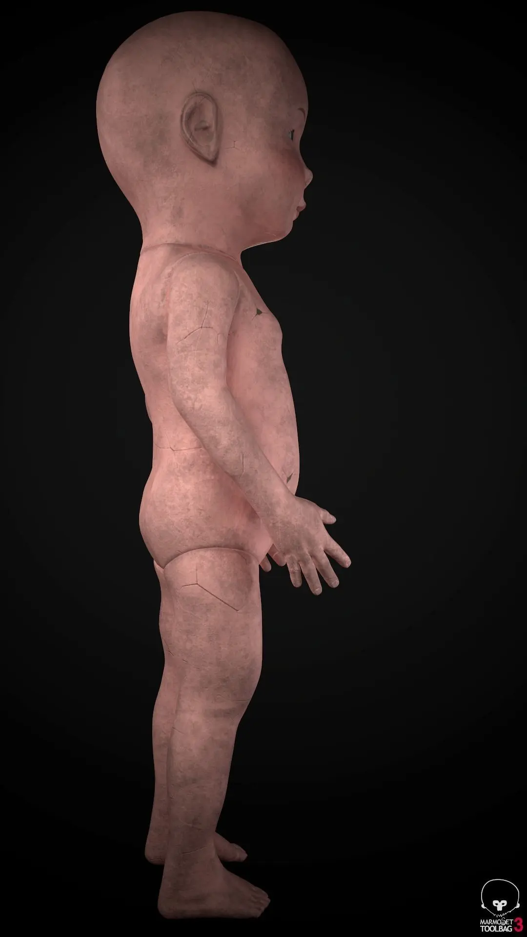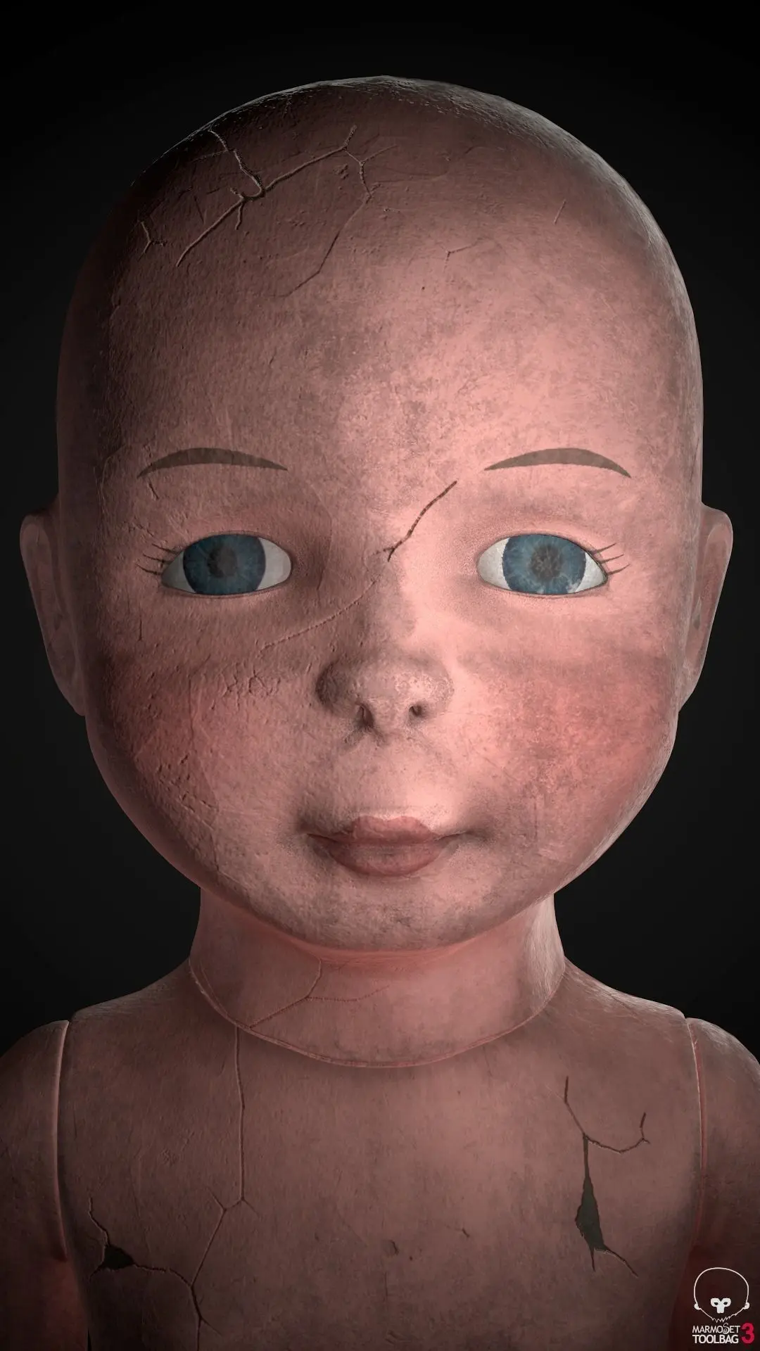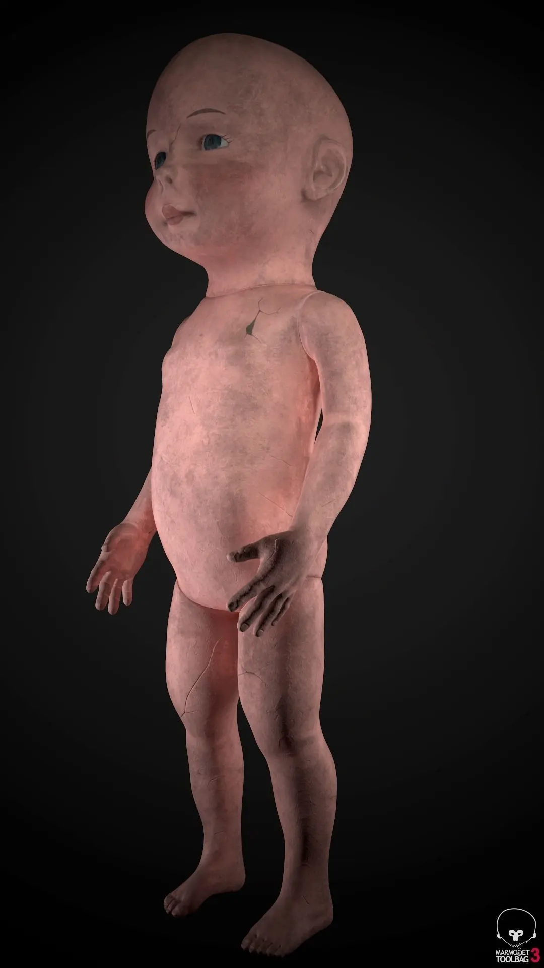 The doll consists of separate parts, combined in 1 object. Legs, hands, head and eyes are removable