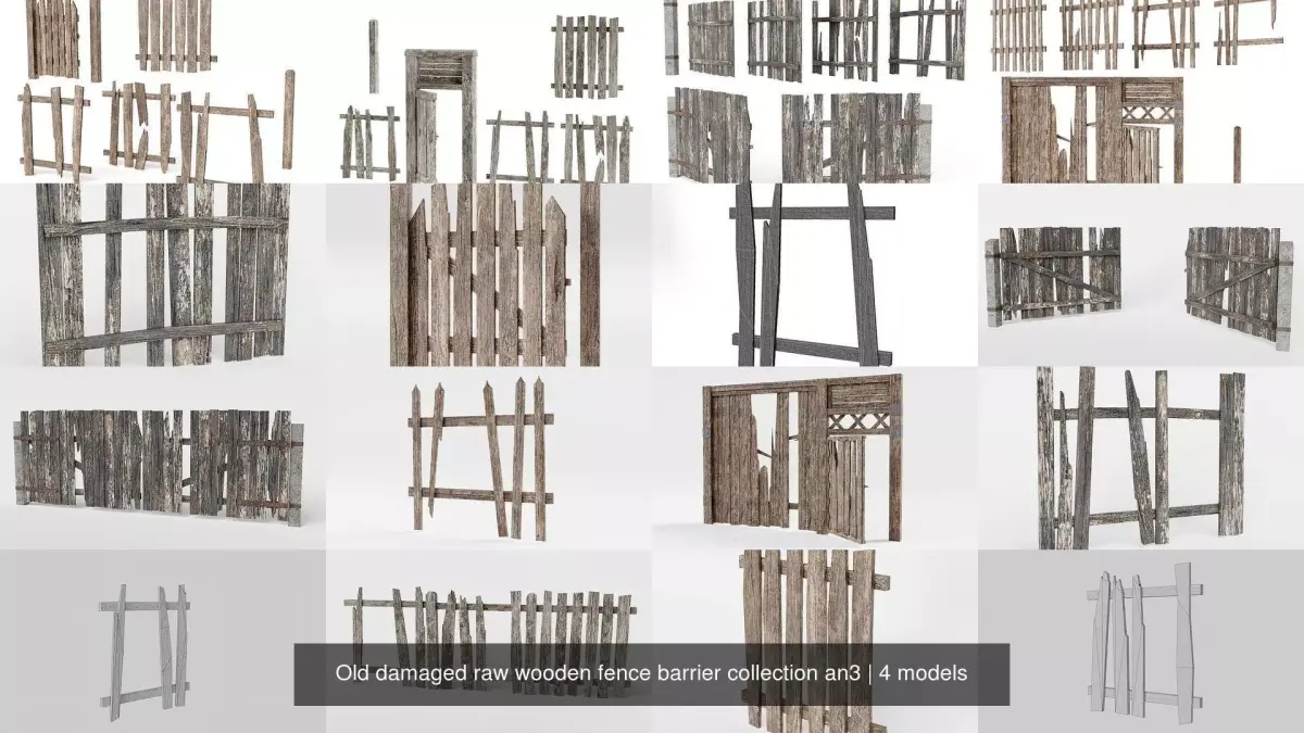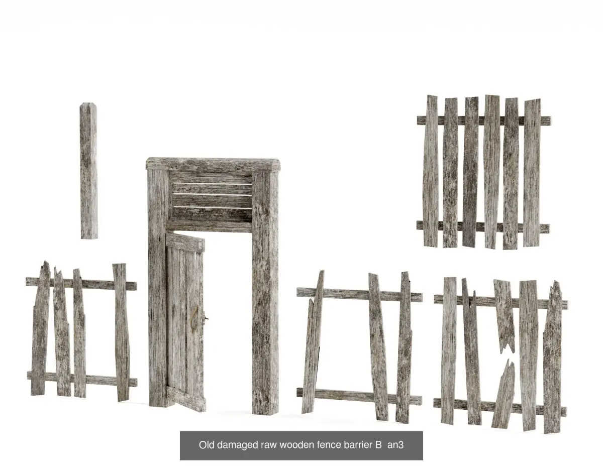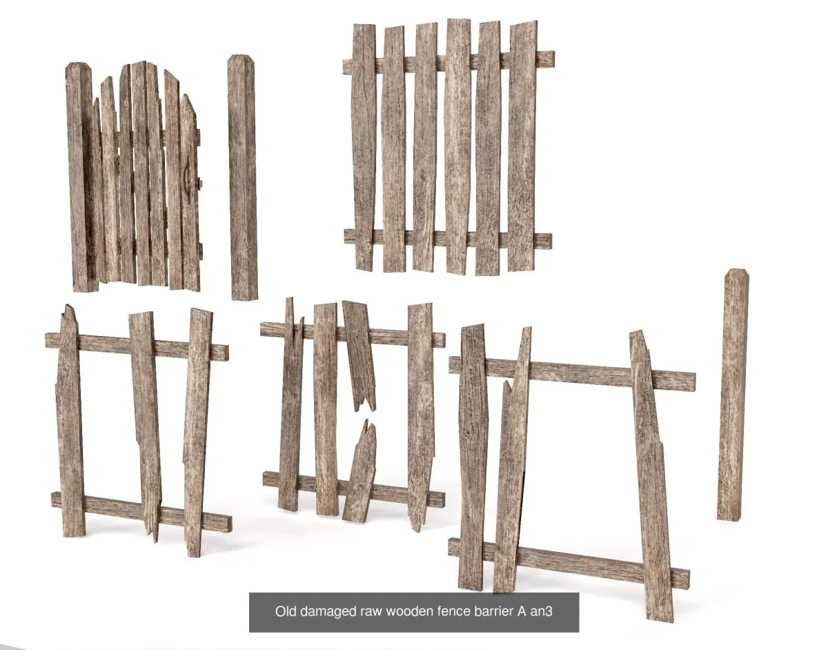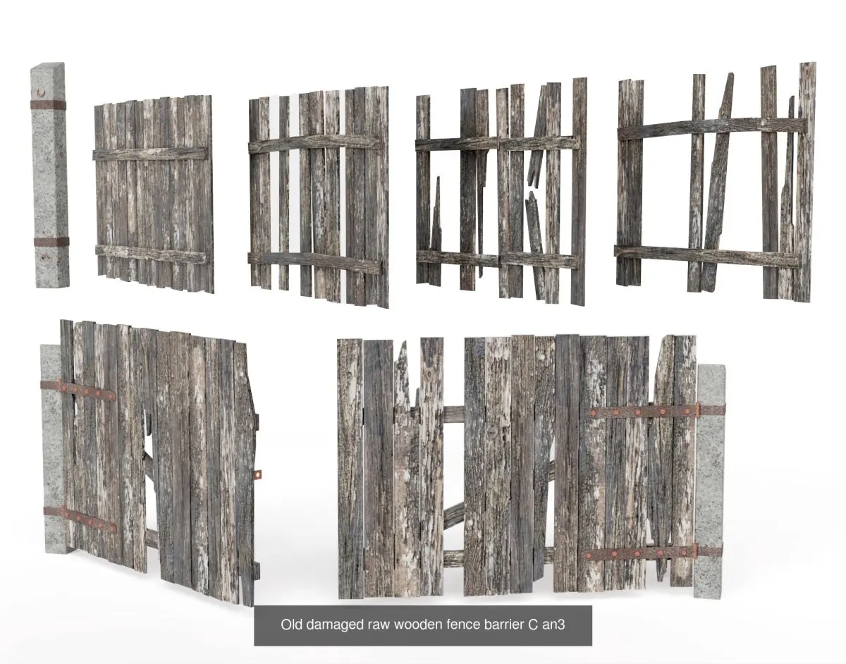 - This product consist one lowpolygon ready model of *Old damaged raw wooden fence barrier collection *
