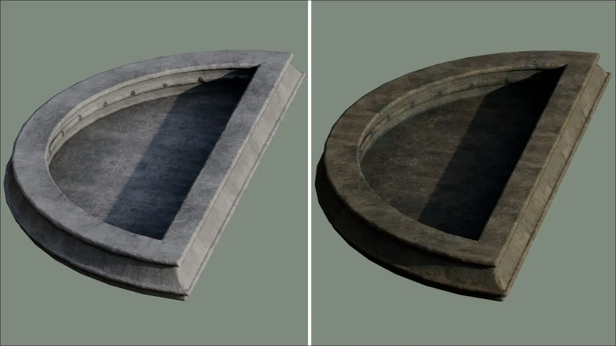 3D game ready model of ancient concrete and marble stone garden or city square building - waterless, dried up fountains. You can fill the fountain with water.