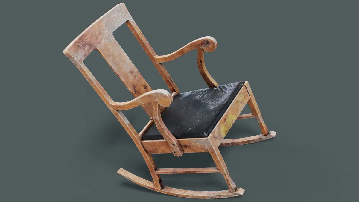 Old Old Dirty Rocking Chair Low Poly 3D Model for games