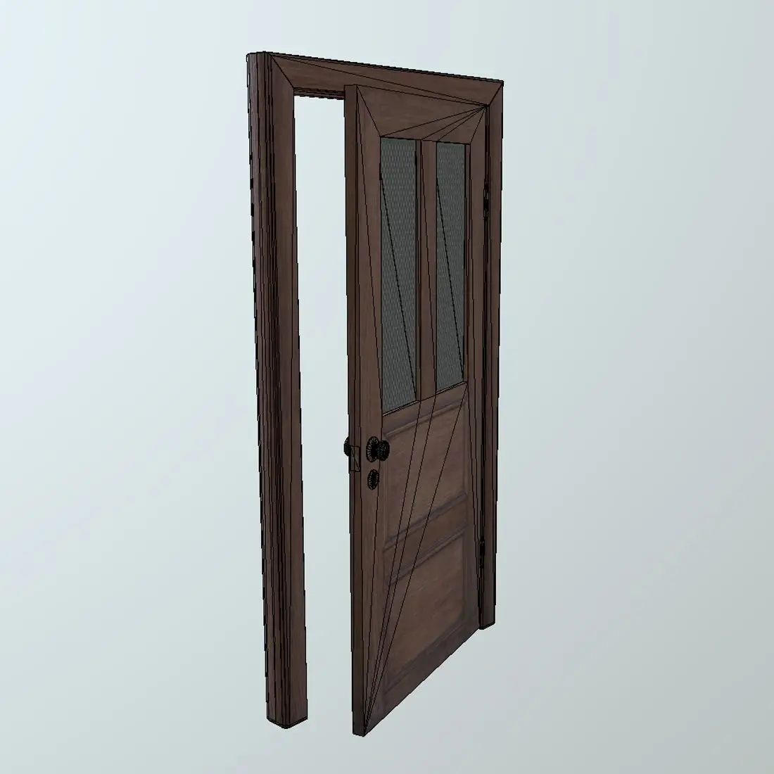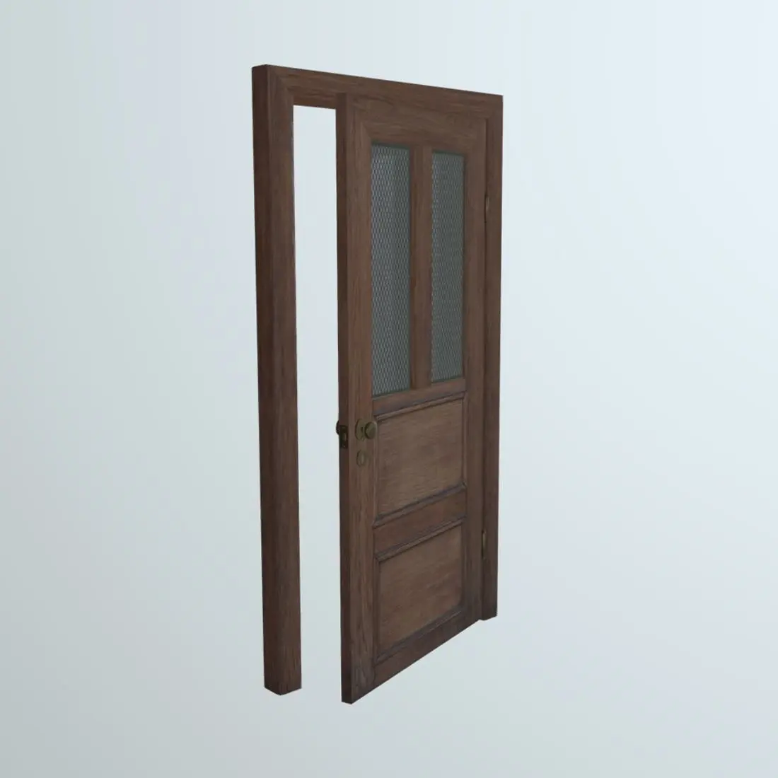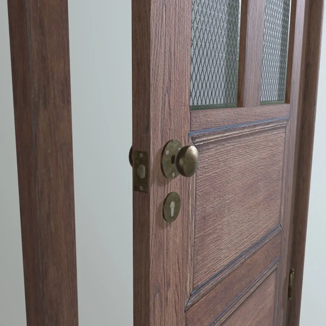 Weathered wood door designed for a shop. Urban version with grating on the glass and it is the right hand. Includes 1x2048 for the frame and 1x4096 PBR textures for the door.