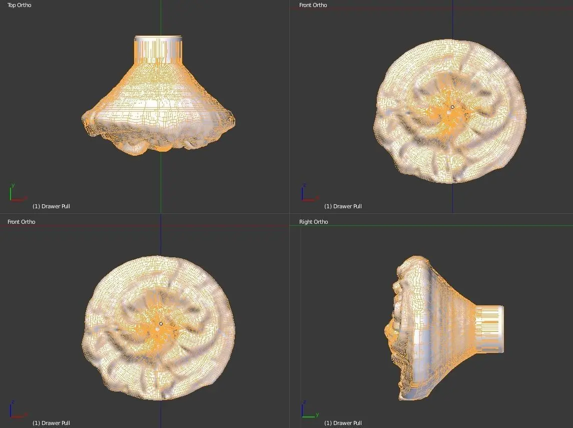 A drawer pulled modeled from an old desk. This contours on the front of this model were created with photogrammetry. The mesh in the back of the pull was added and then the missing texture was hand painted.