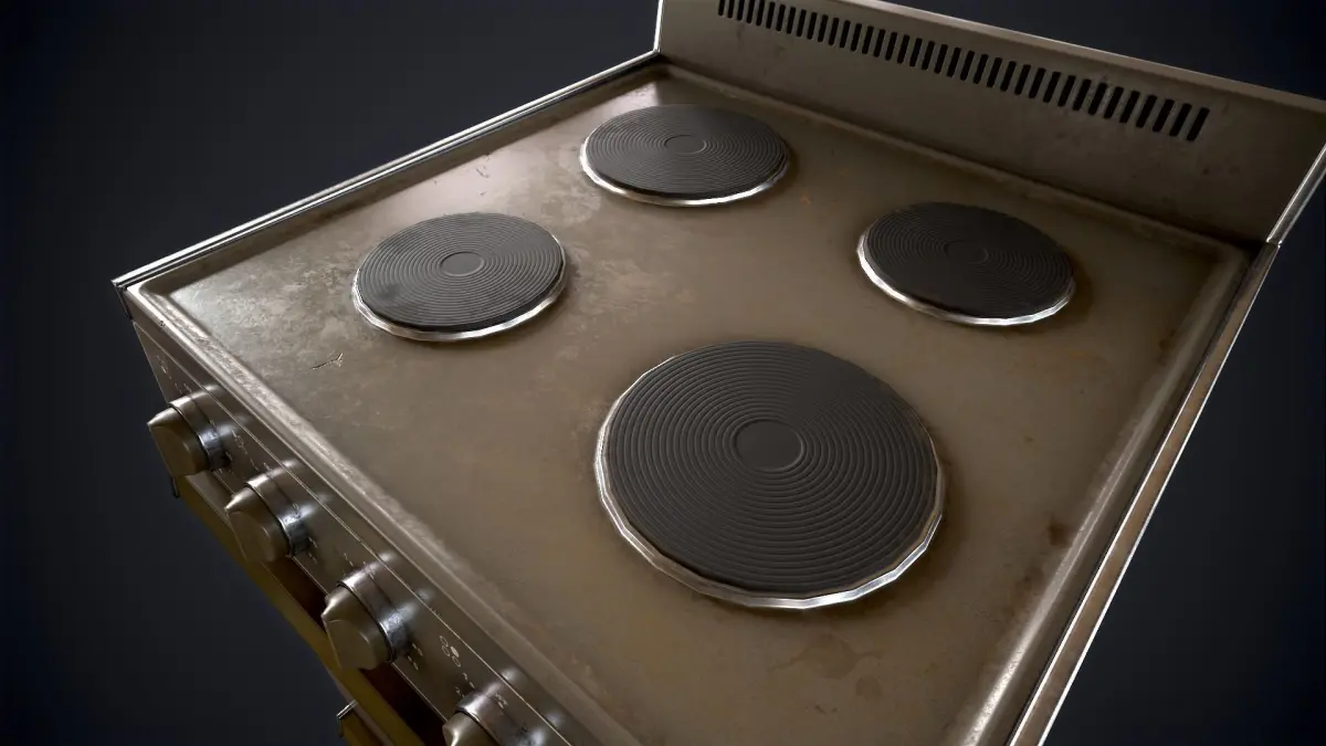 There are stove of dirt, grease, traces of use in the form of scuffs on the stove.