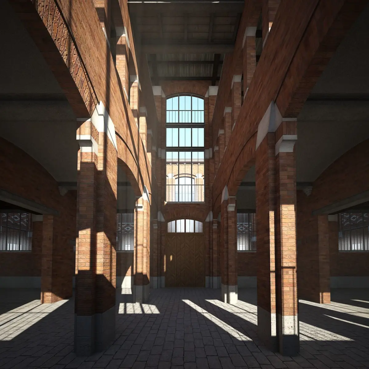 Detailed 3D model of an old factory. The building model is composed of separate pieces: walls, window frames, pilars, roof, etc...Suitable for high resolution close-up. Real world scale.