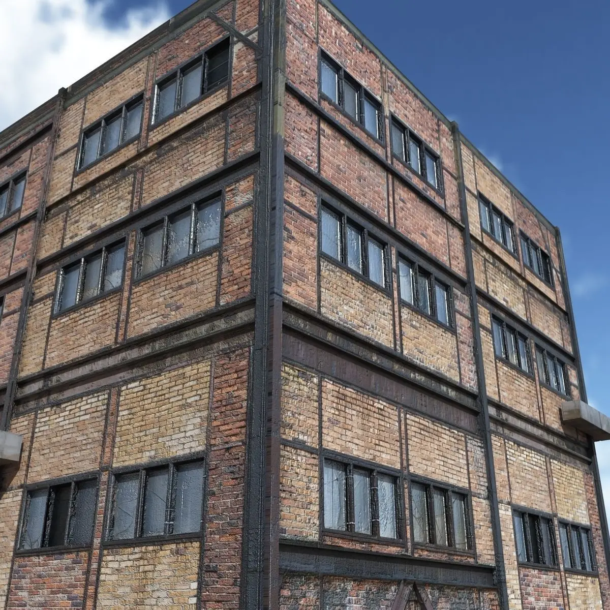 A 3D model of a low poly derelict building. Exterior only, no interior.