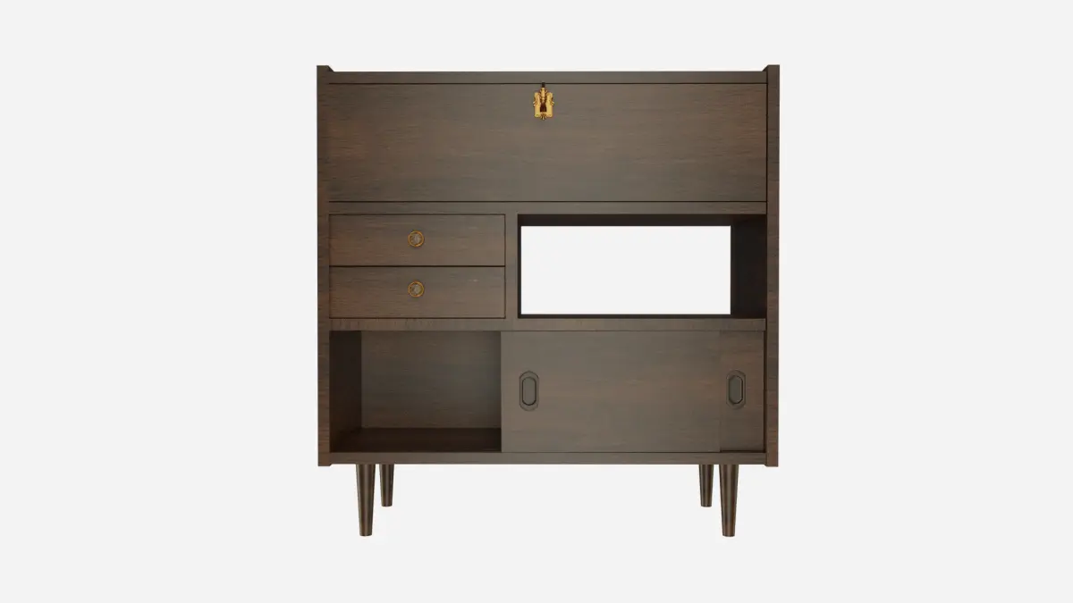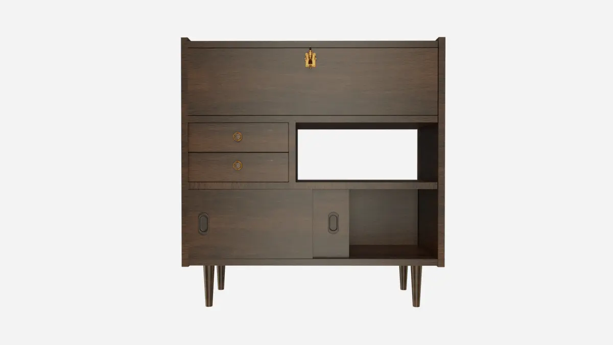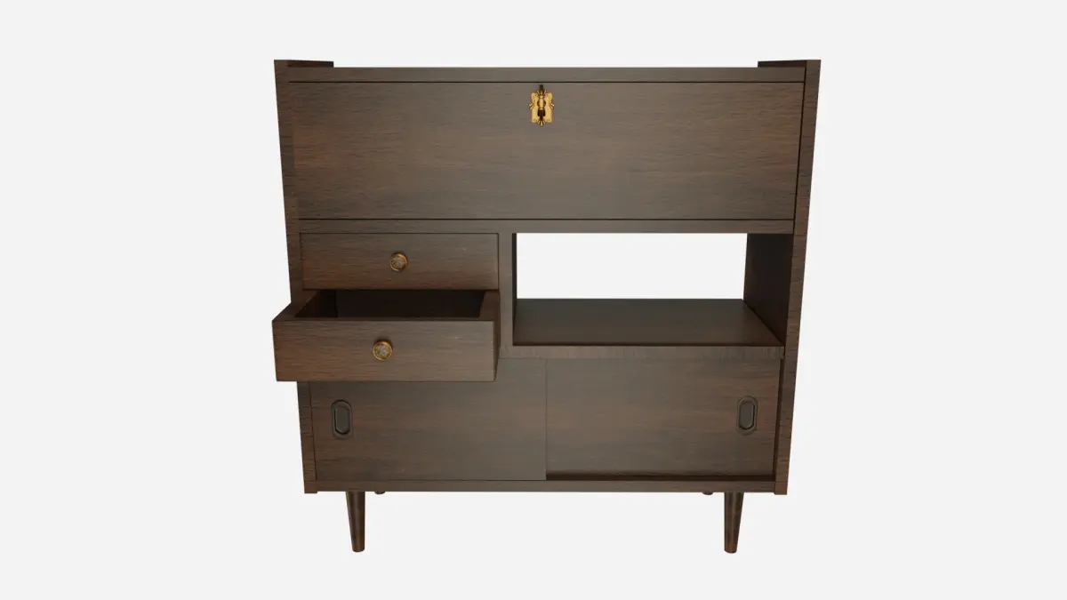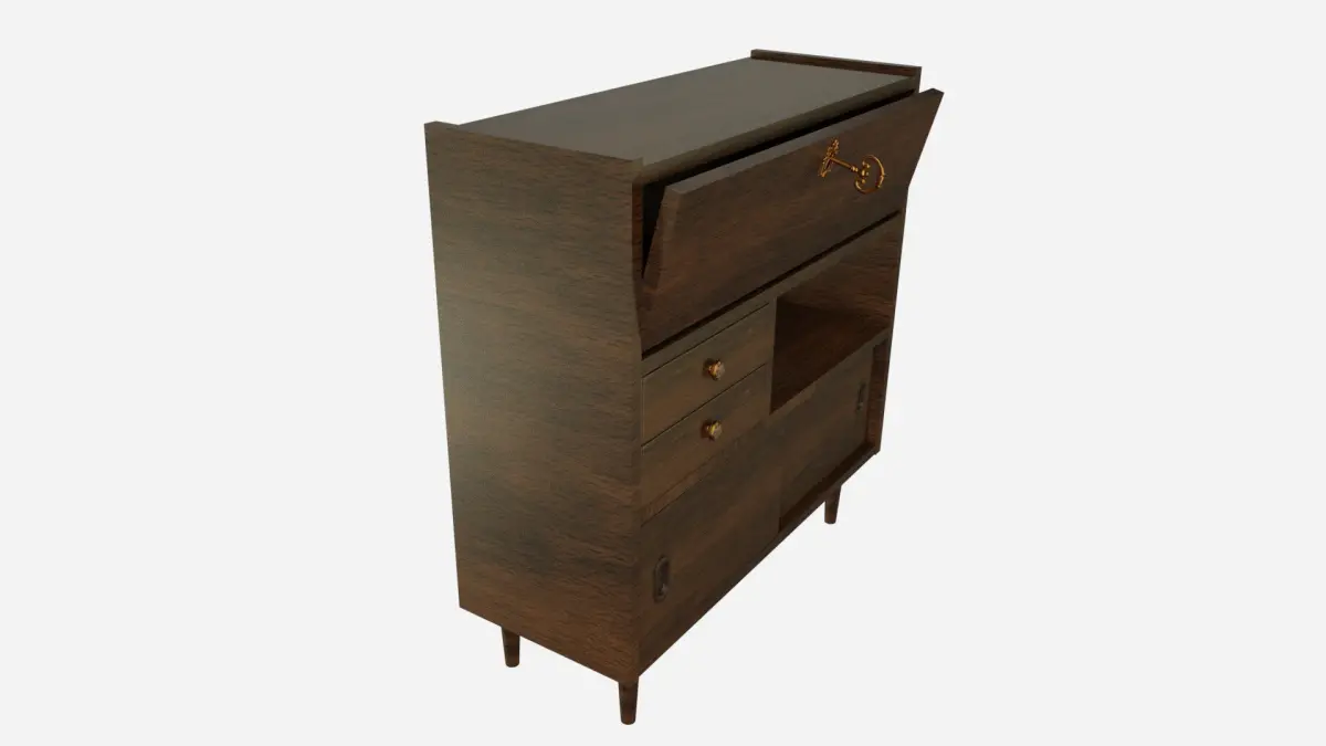 Chest of drawers with gracefull little key on the doors, pull-out shelves and slidind doors.